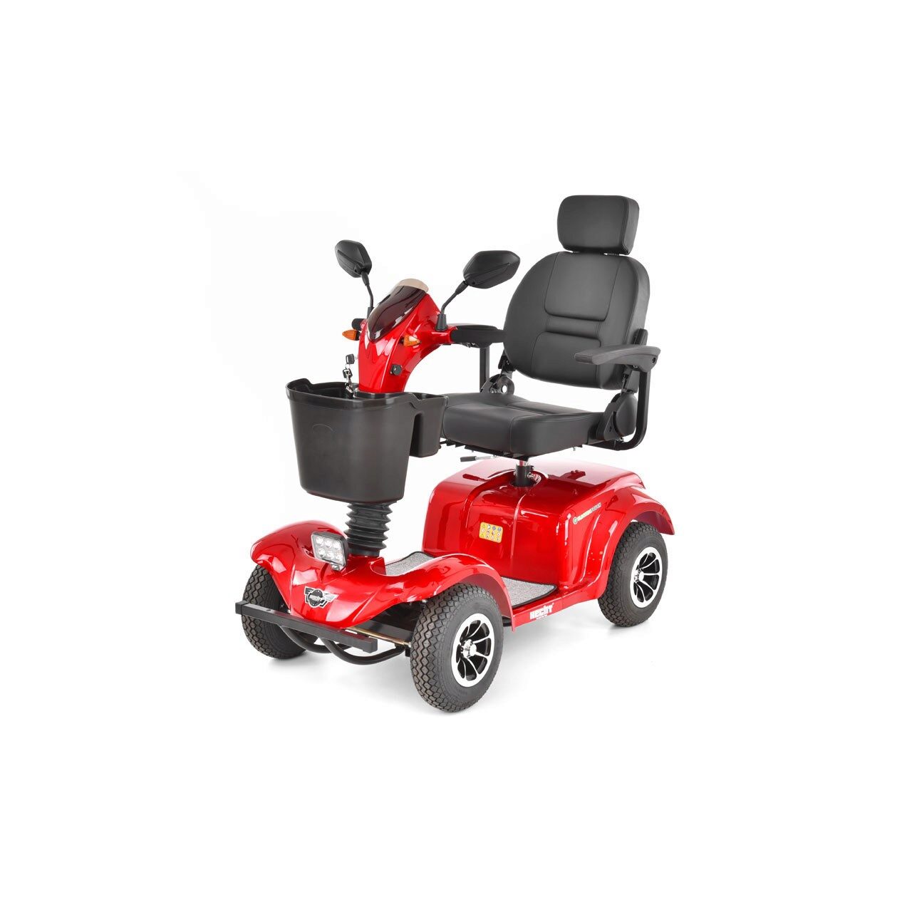 Scaunul cu rotile electric este un scuter pentru batrani si persoane cu mobilitate redusa sau persoane cu dizabilitati. Scaunul confortabil este reglabil. După o simplă apăsare a pârghiei, acesta poate fi, de asemenea, rotit pentru a facilita pornirea și coborârea. Trotineta este controlată prin pârghii de pe ghidon, pe panoul de comandă este posibilă, printre altele, limitarea vitezei maxime cu ajutorul unui buton rotativ. Sub ghidon se afla un cos practic pentru depozitarea lucrurilor personale sau a cumparaturilor mai mici.