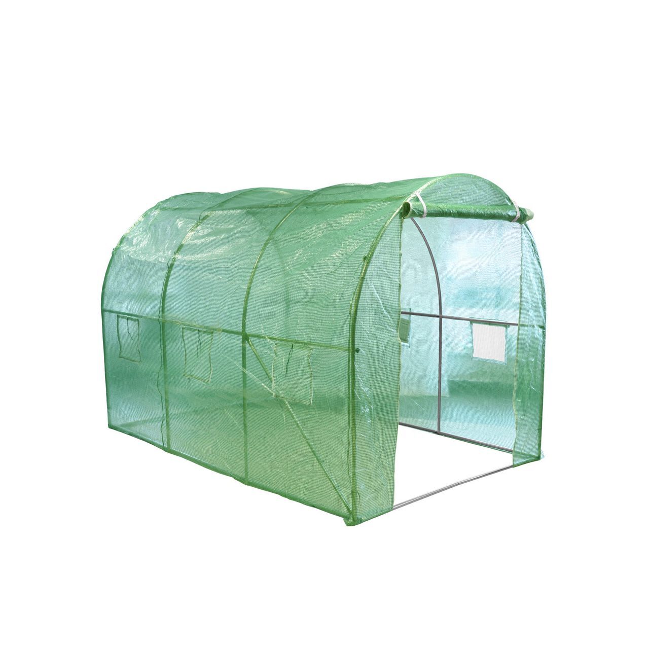 dimensiuni 300 × 200 × 200 cm, suprafață 5,98 m2, țeavă din oțel galvanizat Ø 25 mm, folie verde PE tip plasă 140 g/m2, 6 ferestre, 1 ușă