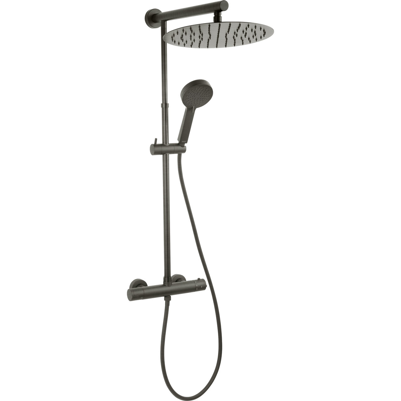 Set 2 in 1 Trevi: TRV7 baterie perete dus termostatata cu set bara dus cu suport culisant, dus fix si para dus mobila, gun metal, Ferro NP75-TRV7U-GM - Informații despre acest produs: