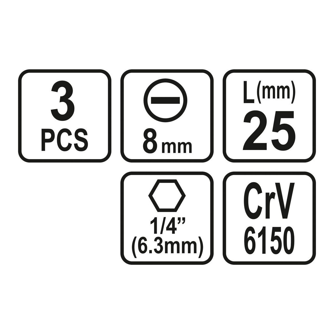 Set 3 biti 1/4 8x25mm Sthor 65483