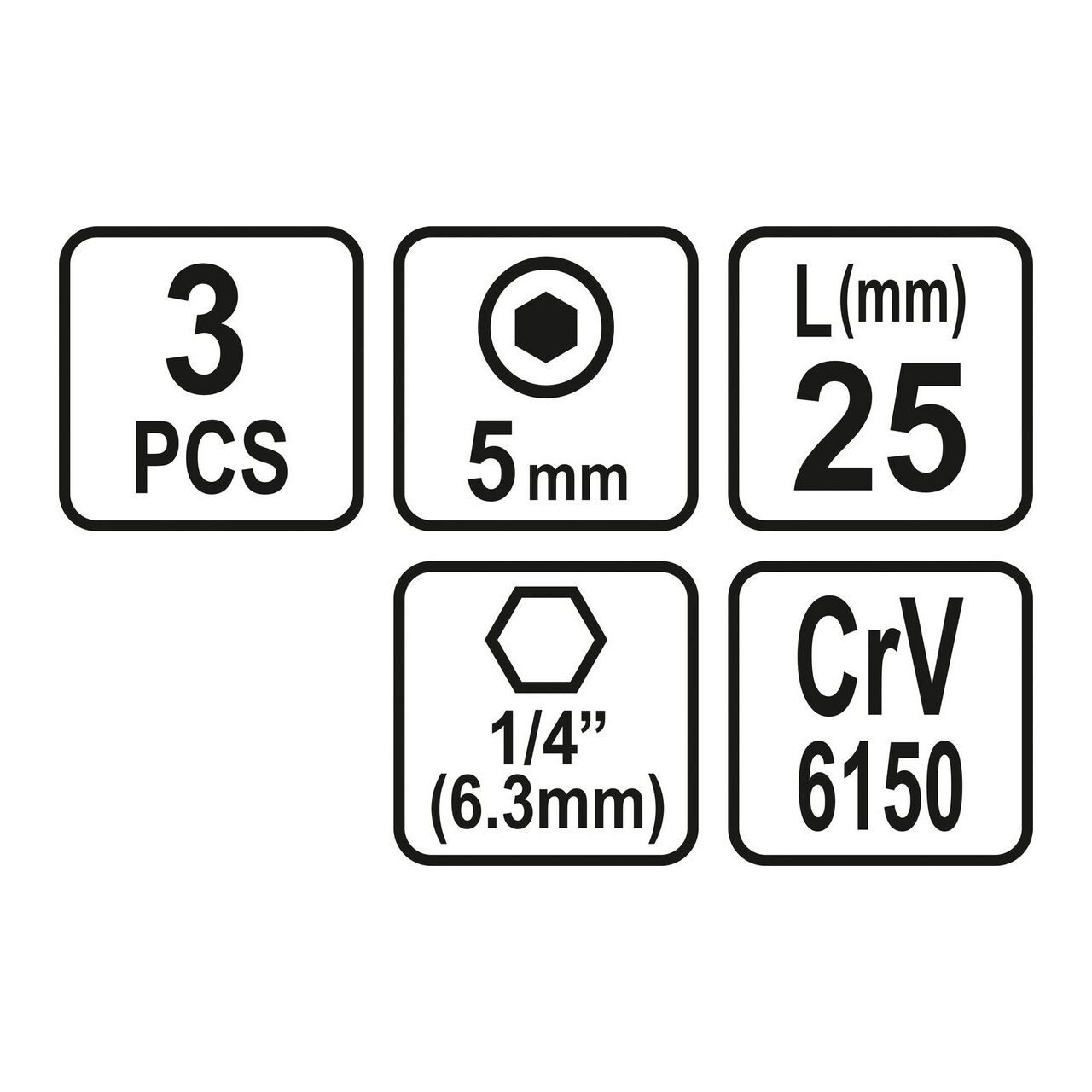 Set 3 biti 1/4 h5 x 25mm Sthor 65503 - Informații despre acest produs: