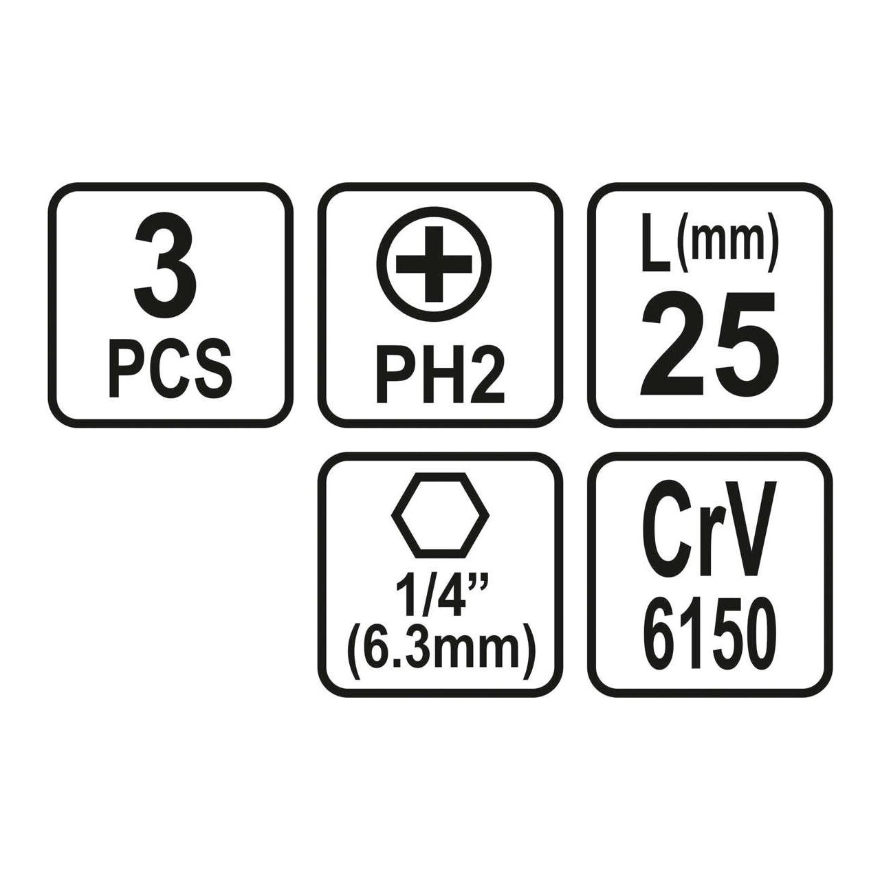 Set 3 biti 1/4 PH 2x25mm Sthor 65453