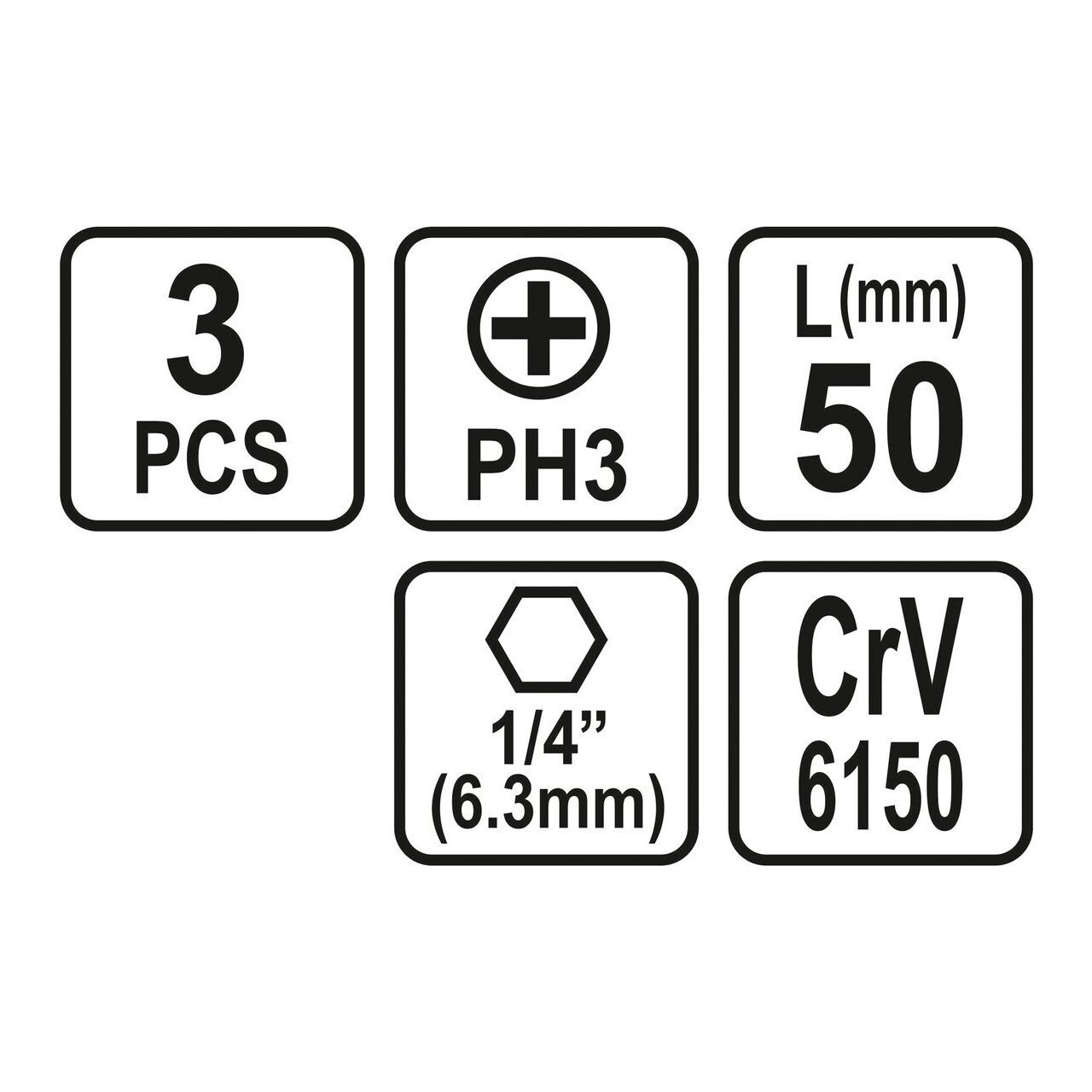 Set 3 biti 1/4 PH 3x50mm Sthor 65458
