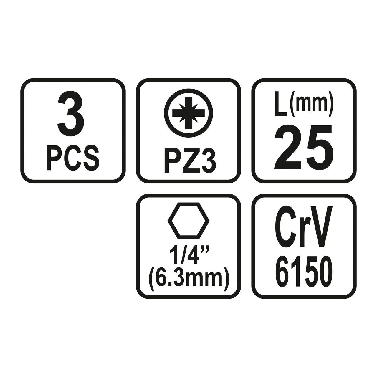 Set 3 biti 1/4 PZ 3x25mm Sthor 65472 - Informații despre acest produs: