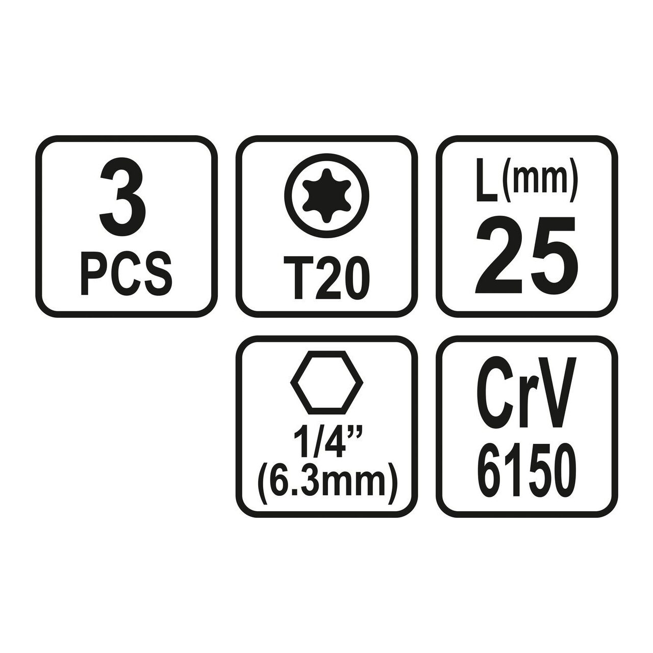 Set 3 biti torx 1/4 t20x25mm Sthor 65494