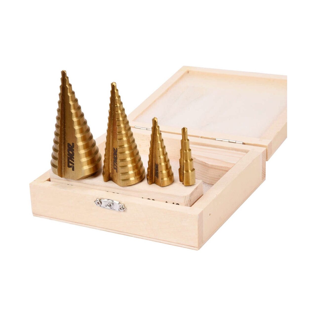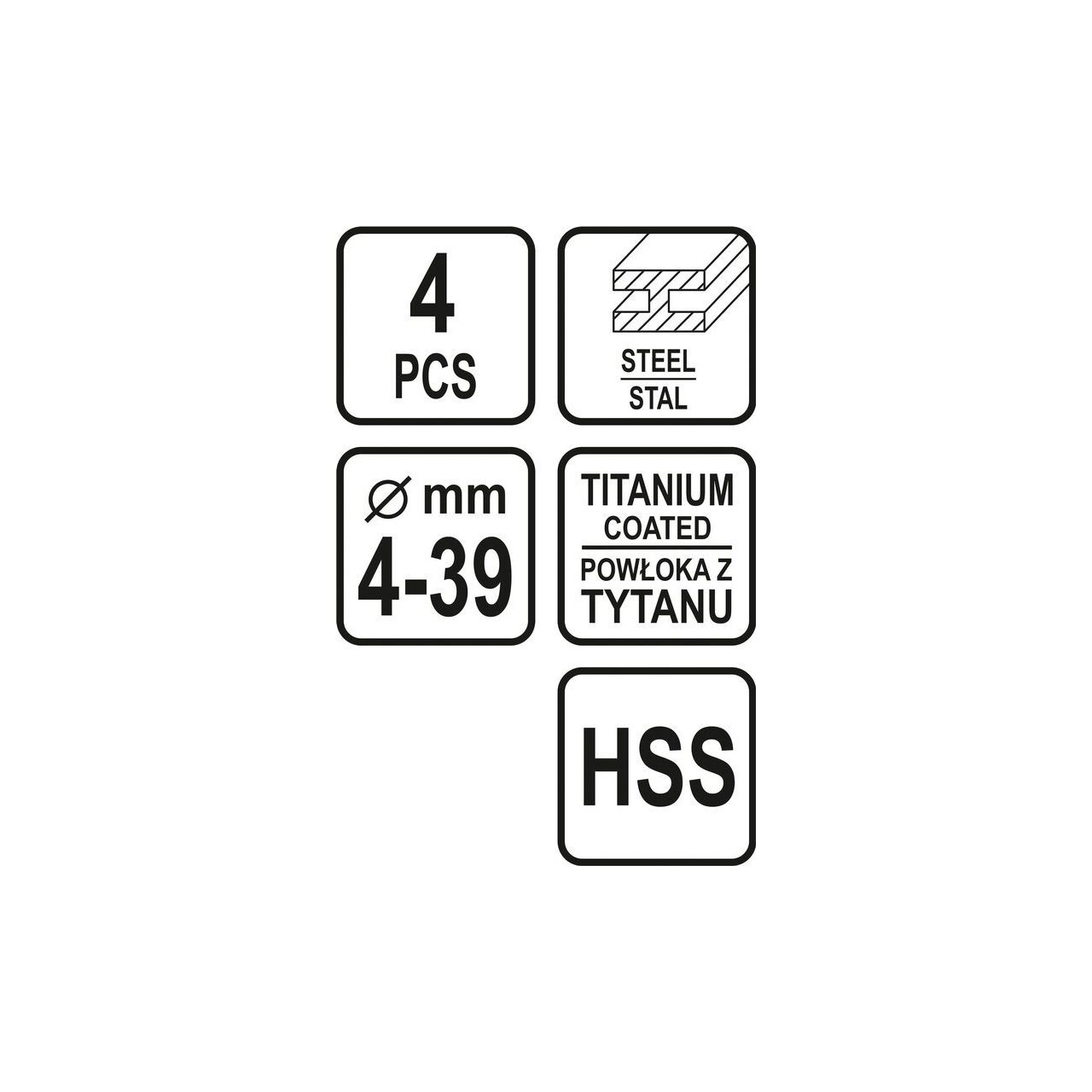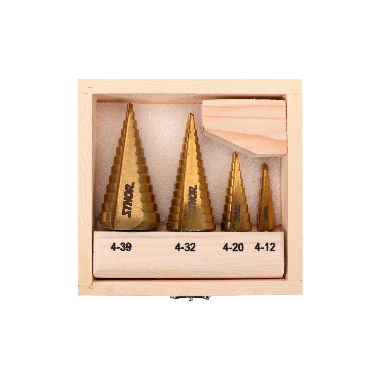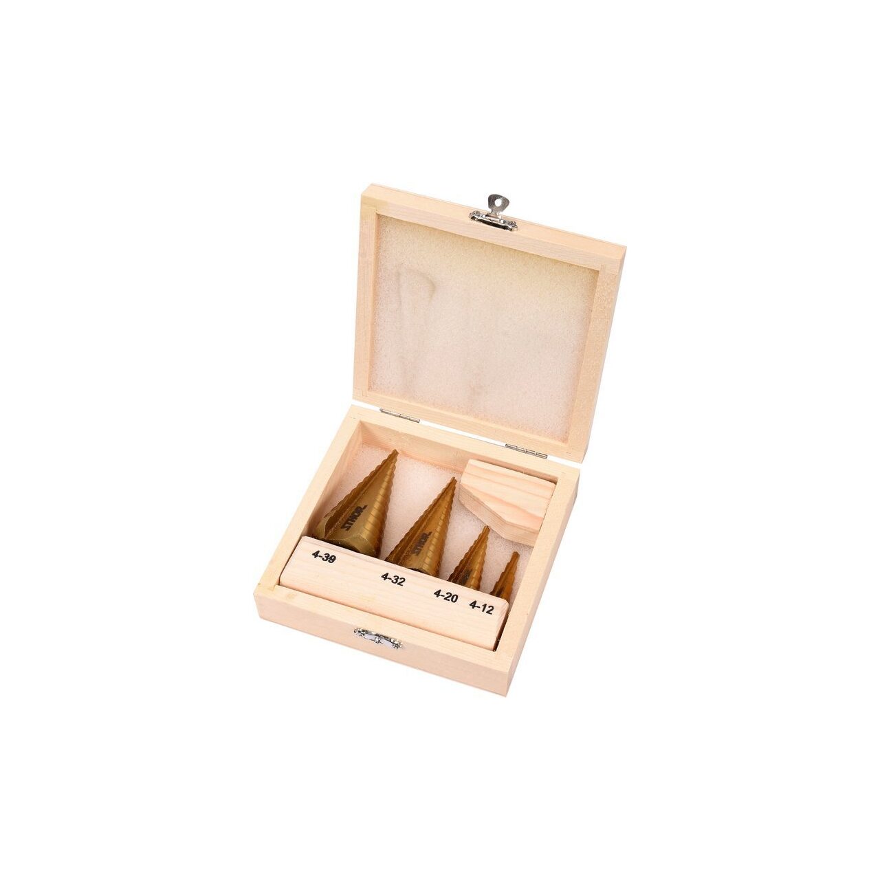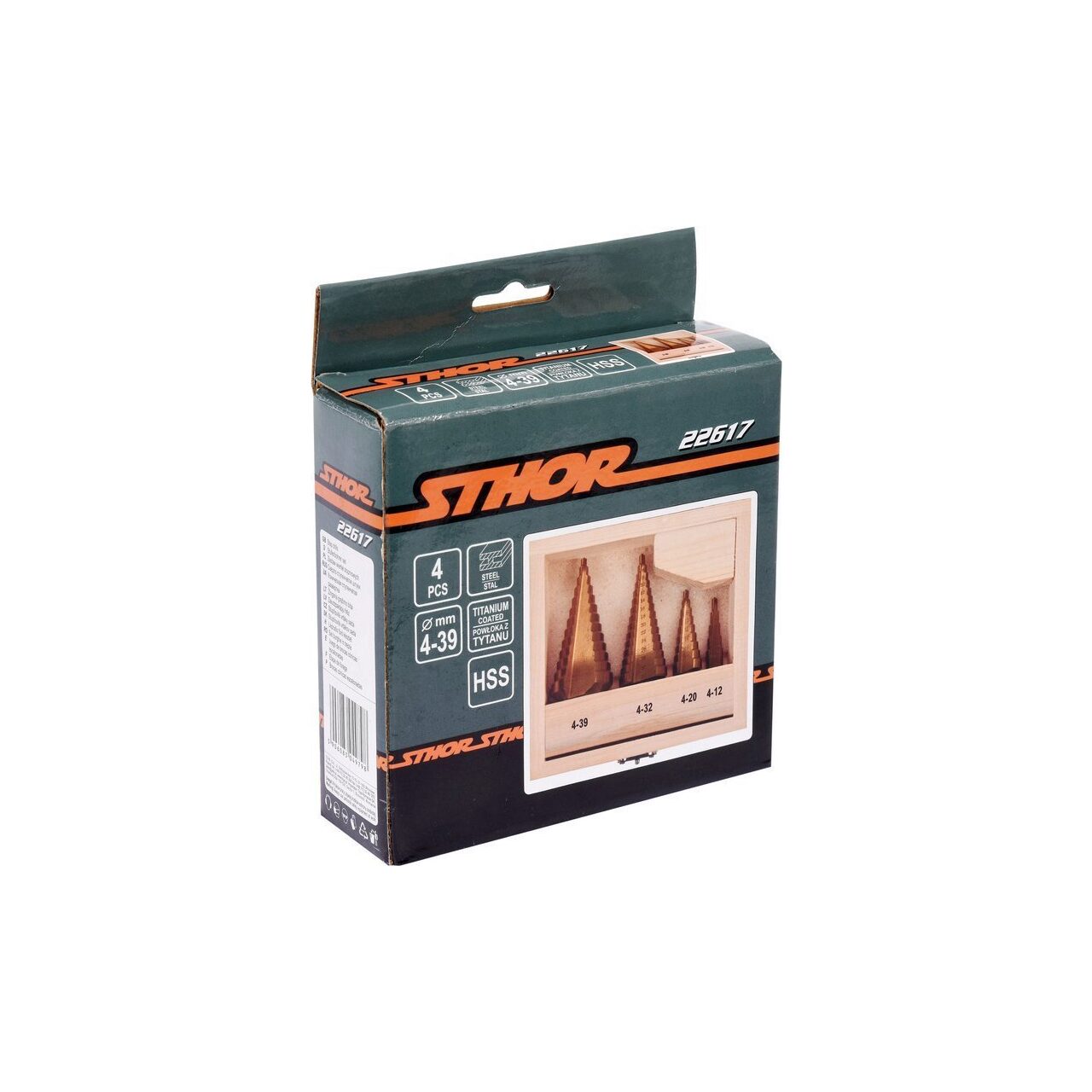Caracteristici produsUn set de burghiu cu trepte de STHOR 22617. Proiectat pentru găurirea din oțel inoxidabil de înaltă calitate, oțel structural și laminat la rece, în metale neferoase, foi de oțel, materiale plastice. • marginile găurii găsite rămân curate și fără bavuri • burghiul nu se scurge pe suprafețe rotunde • autocentrare pe suprafețe rotunjite și alunecoase • disipare rapidă a căldurii la găurirea în materiale dure • din oțel HSS de mare viteză acoperit cu nitrură de titan • gradat în trepte de 2 și 3 mm. Mâner cilindric.Parametrii- Diametru [mm]: 4-39