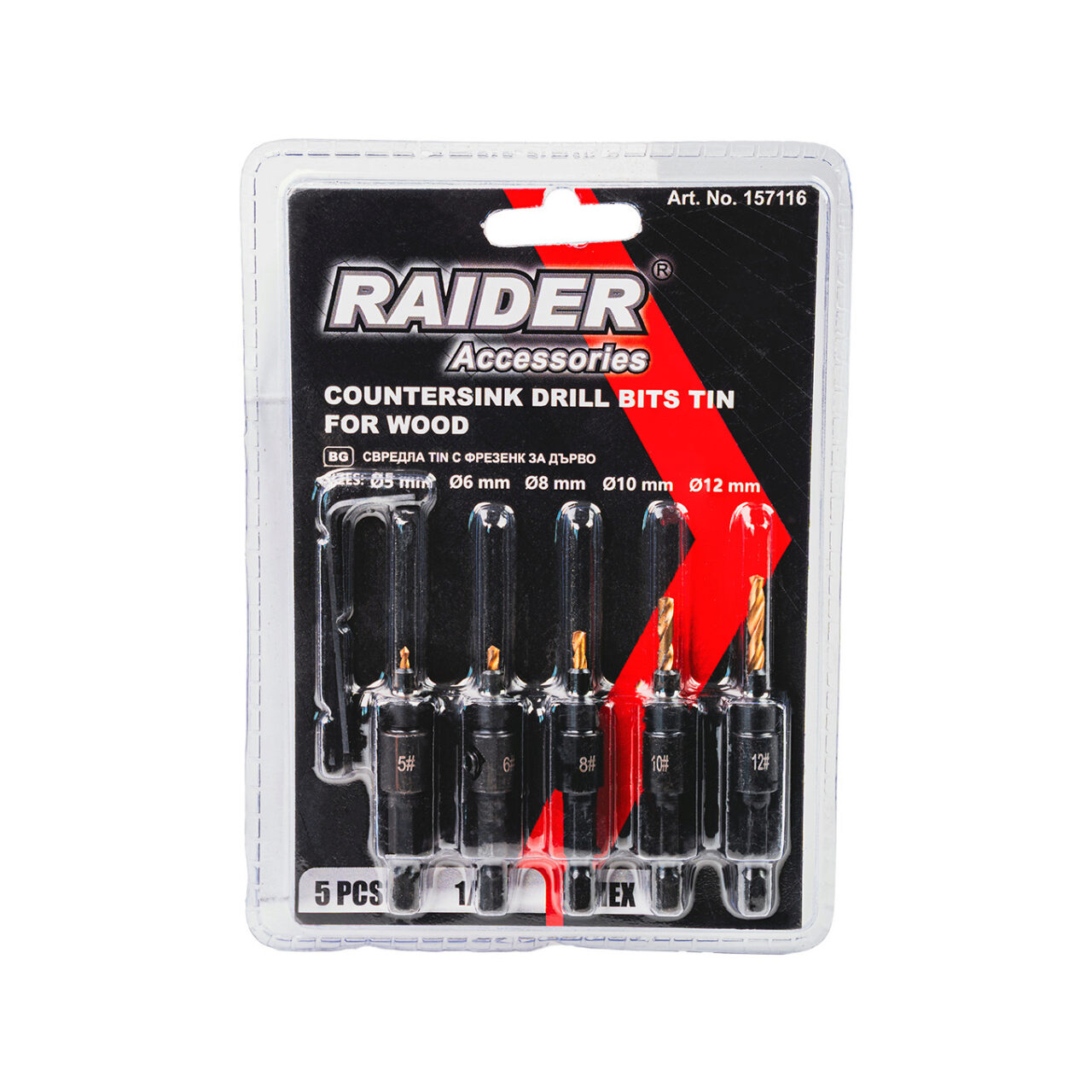 Set 5 burghie pentru frezat 1/4" hex Ø5, 6, 8, 10, 12mm, Raider Power Tools 157116