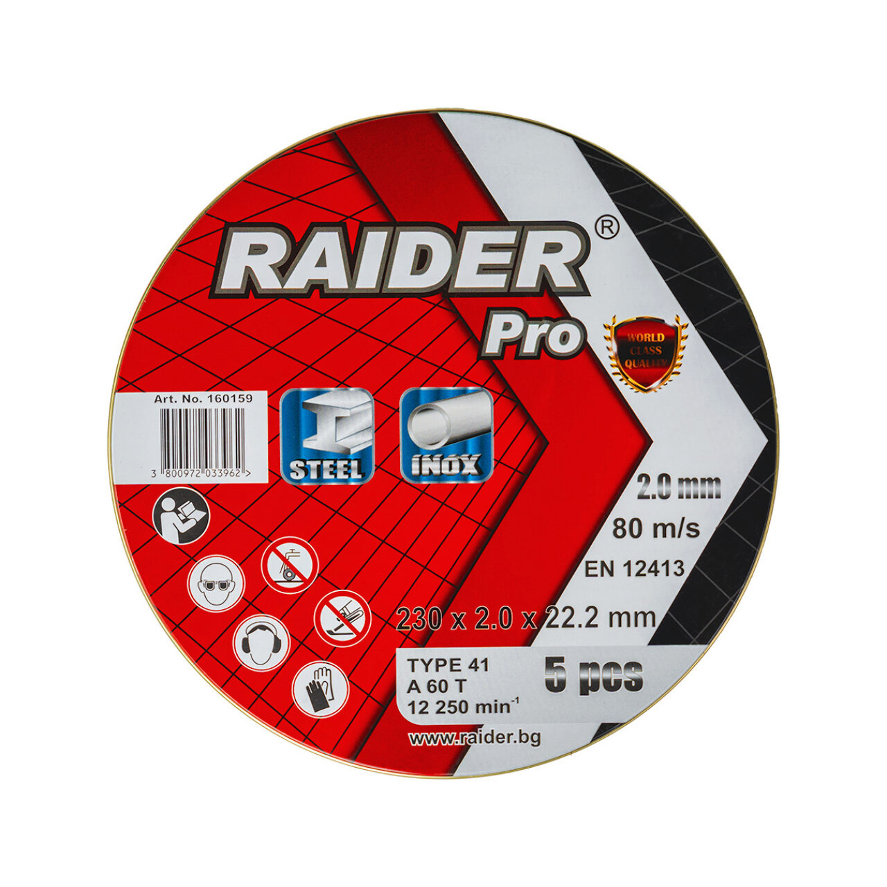 Set 5 discuri taiat metal 230х2mm A60T Inox RDP, Raider Pro 160159 - Informații despre acest produs: