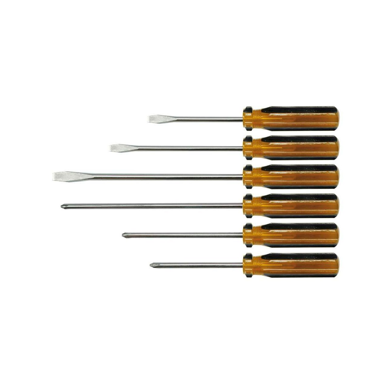 Caracteristici produsSet de șurubelnițe 64050. Fabricat din oțel carbon. Conținutul pachetuluiȘurubelnițe plate: 5X215MM, 5X165MM, 5X145MM, șurubelnițe Phillips: PH1X215MM, PH1X165MM, PH1X145MM,Parametrii- Sfat: amestec de tipuri