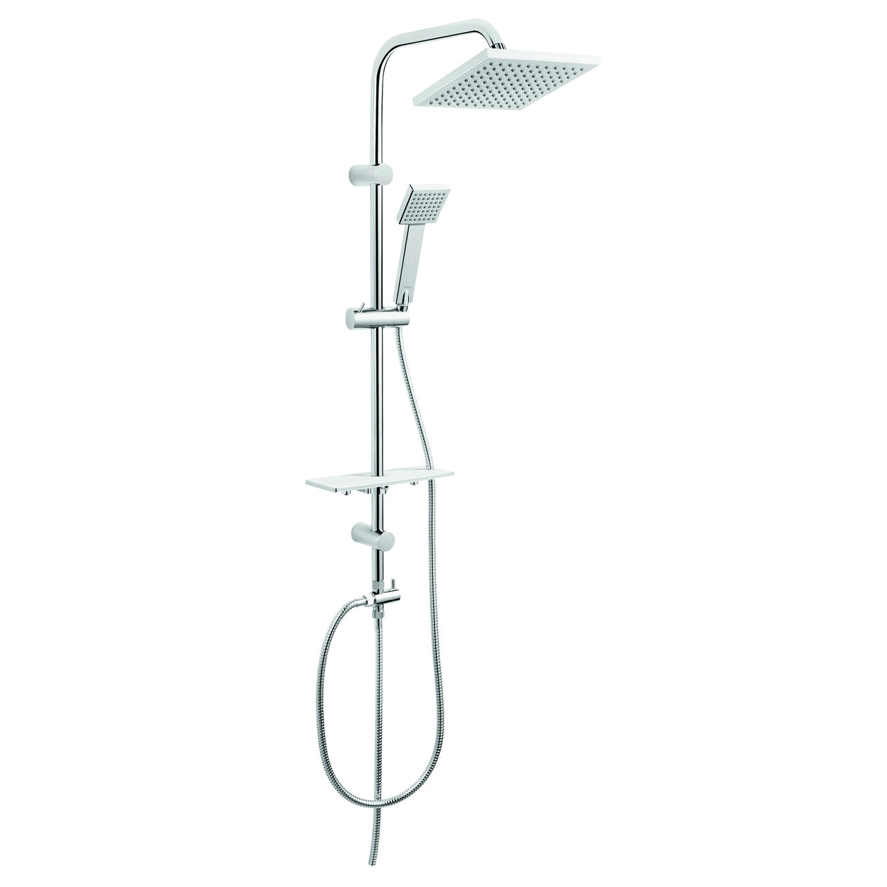 Set bara dus cu suport culisant, dus fix, para dus mobila si polita Squerto Lux, crom, Ferro NP24