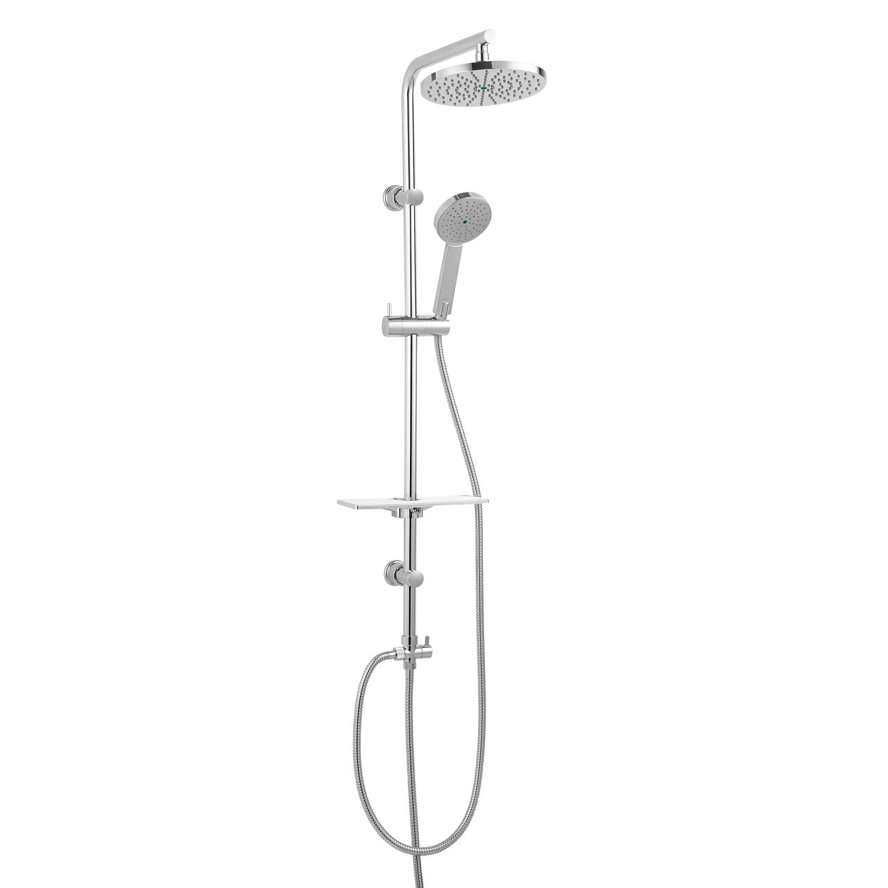 Conceput pentru un duș confortabil, sistemul oferă o experiență uniformă datorită capului fix cu diametrul de 200 mm și tipului de pulverizare ploaie. Sistemul Easy Clean facilitează îndepărtarea rapidă a depunerilor, iar sistemul de economisire a apei optimizează consumul fără a compromite acoperirea jetului. Brațul de 320 mm poziționează capul fix la distanță utilă față de perete, iar bara de 985 mm asigură stabilitate. Suportul de perete cu înălțime reglabilă ajută la alinierea exactă în timpul montajului, iar accesoriul inclus, un raft plat pentru produse cosmetice, oferă organizare imediată, cu dispozitiv reglabil pentru poziționare corectă.