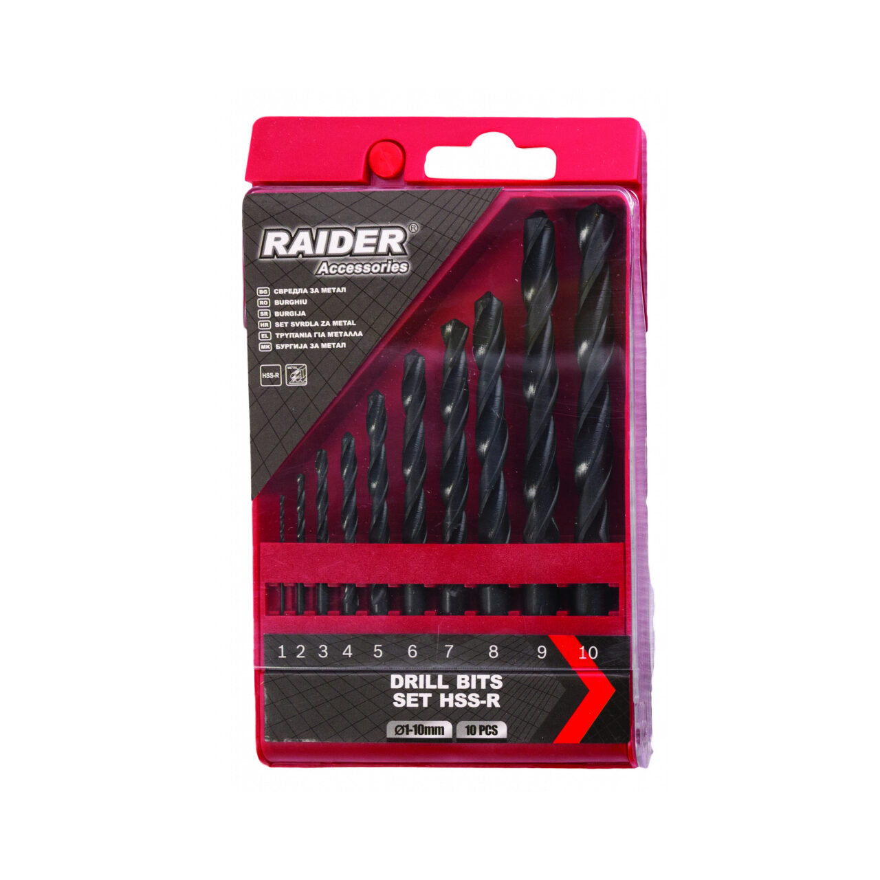 Set burghie 10pcs. Ø1, 2, 3, 4, 5, 6, 7, 8, 9, 10mm HSS-R, Raider Power Tools 157111