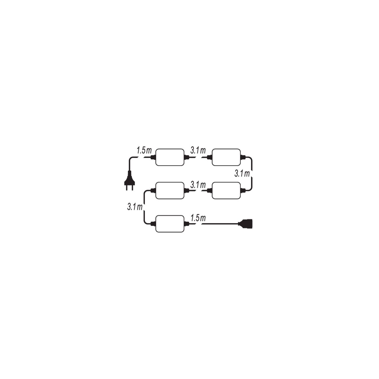 - lungime cablu: 15,4 m (1,5 m + 4 x 3,1 m + 1,5 m)