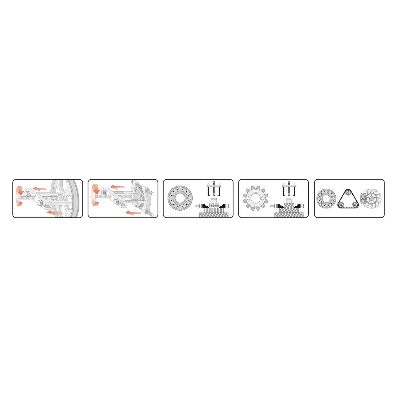 Caracteristici produsExtragere cu două brațe pentru demontarea rulmenților, angrenajelor, discurilor de frână etc. Vine cu separatoare pentru a ajuta la îndepărtarea elementelor de fixare și a unui set de șuruburi centrale. Recomandat pentru servicii auto și mecanice.