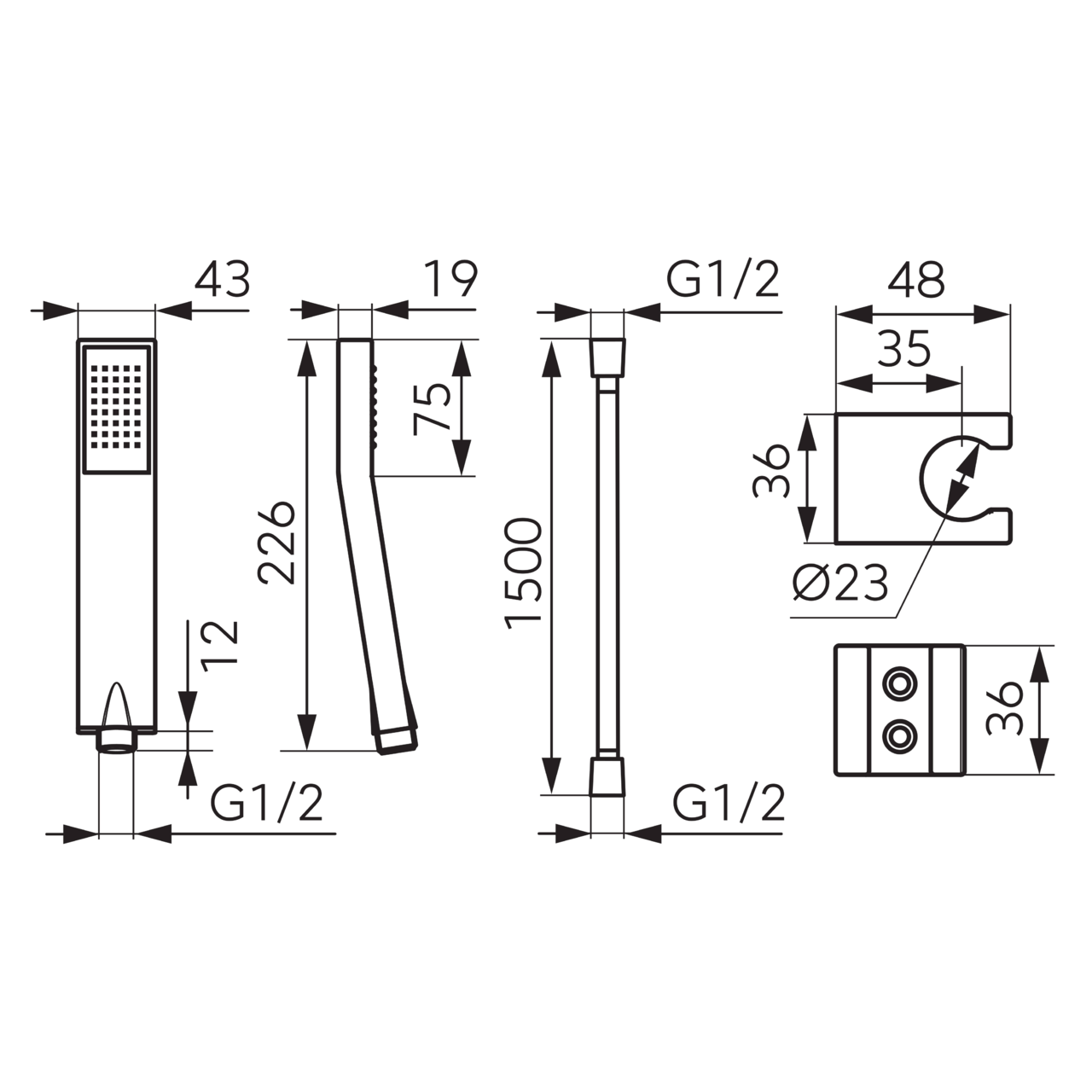 Pulverizarea de tip ploaie asigură o acoperire uniformă, cu picături consistente pentru un duș previzibil și confortabil. Setul include o pară de duș din ABS cu lungimea de 226 mm și un furtun din PVC de 1500 mm, pentru mobilitate optimă. Datorită sistemului Easy Clean pentru întreținere rapidă, depunerile se îndepărtează printr-o simplă frecare a duzelor, menținând fluxul constant. Construcția din materiale ușor de curățat și rezistente la murdărie simplifică igienizarea periodică. Numărul de jeturi este 1, oferind o experiență stabilă, fără comutări suplimentare. Setul este conceput pentru utilizare zilnică, punând accent pe funcționare fiabilă și manevrare comodă în spațiul de duș.