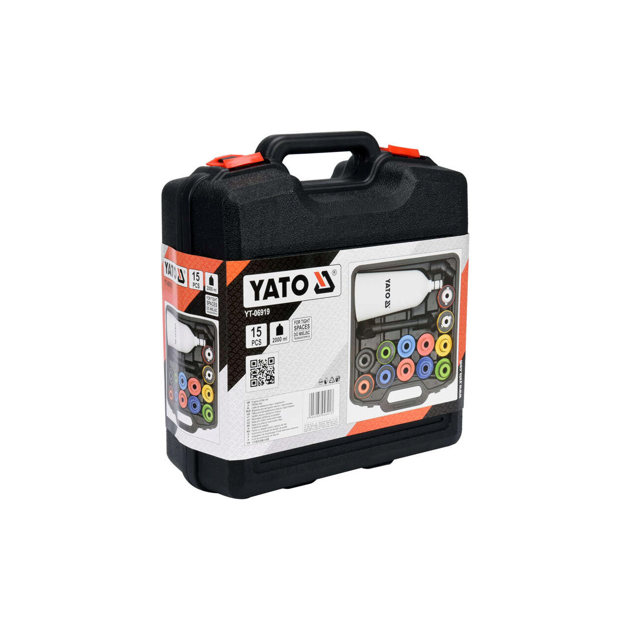 în set: pâlnie cu o capacitate. 2 L, braț din 2 piese cu reglare la 180 ° a vârfurilor și 12 adaptoare montate în locul capacului de umplere