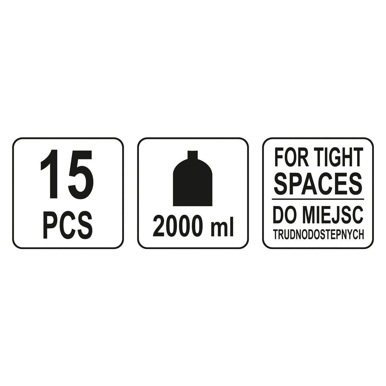 - în set: pâlnie cu o capacitate. 2 L, braț din 2 piese cu reglare la 180 ° a vârfurilor și 12 adaptoare montate în locul capacului de umplere