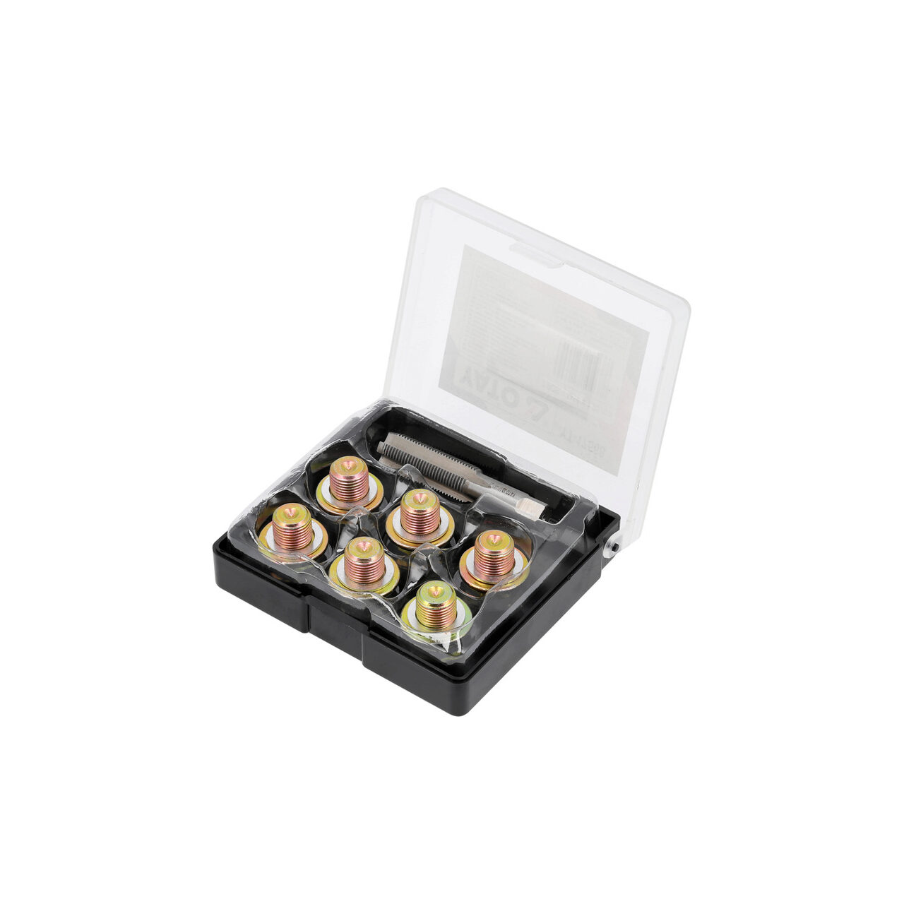 Kit pentru repararea simplă a filetului dopurilor de golire de la baia de ulei, cutii de viteze etc. Se potrivește majorității filetelor utilizate în mod obișnuit la autoturisme și camioane ușoare.