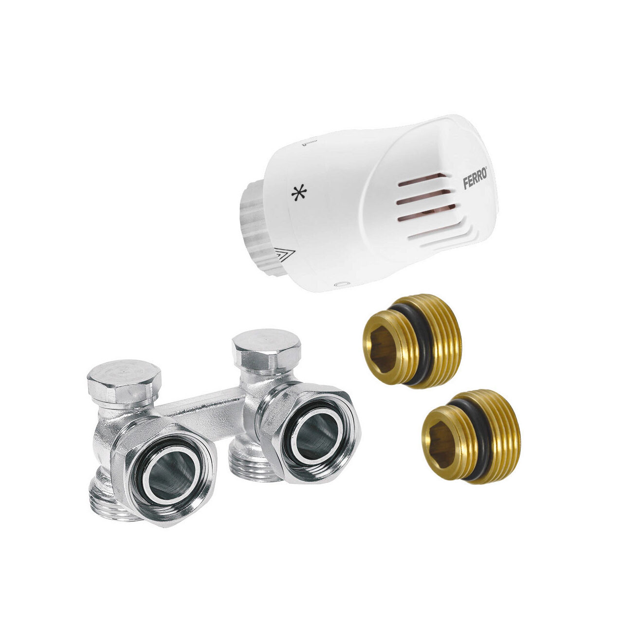 - Configurație: set robinet radiator termostatic dublu drept + cap