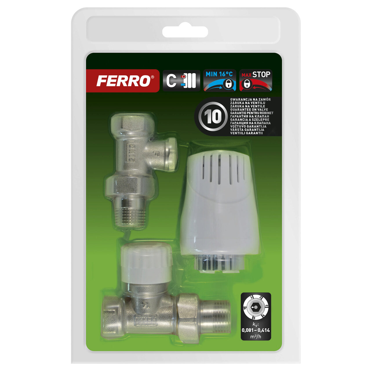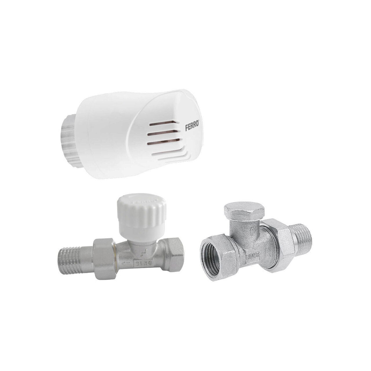 Set robineti radiator drepti 1/2" tur termostatic+retur+cap termostat, Ferro ZTMN01-16