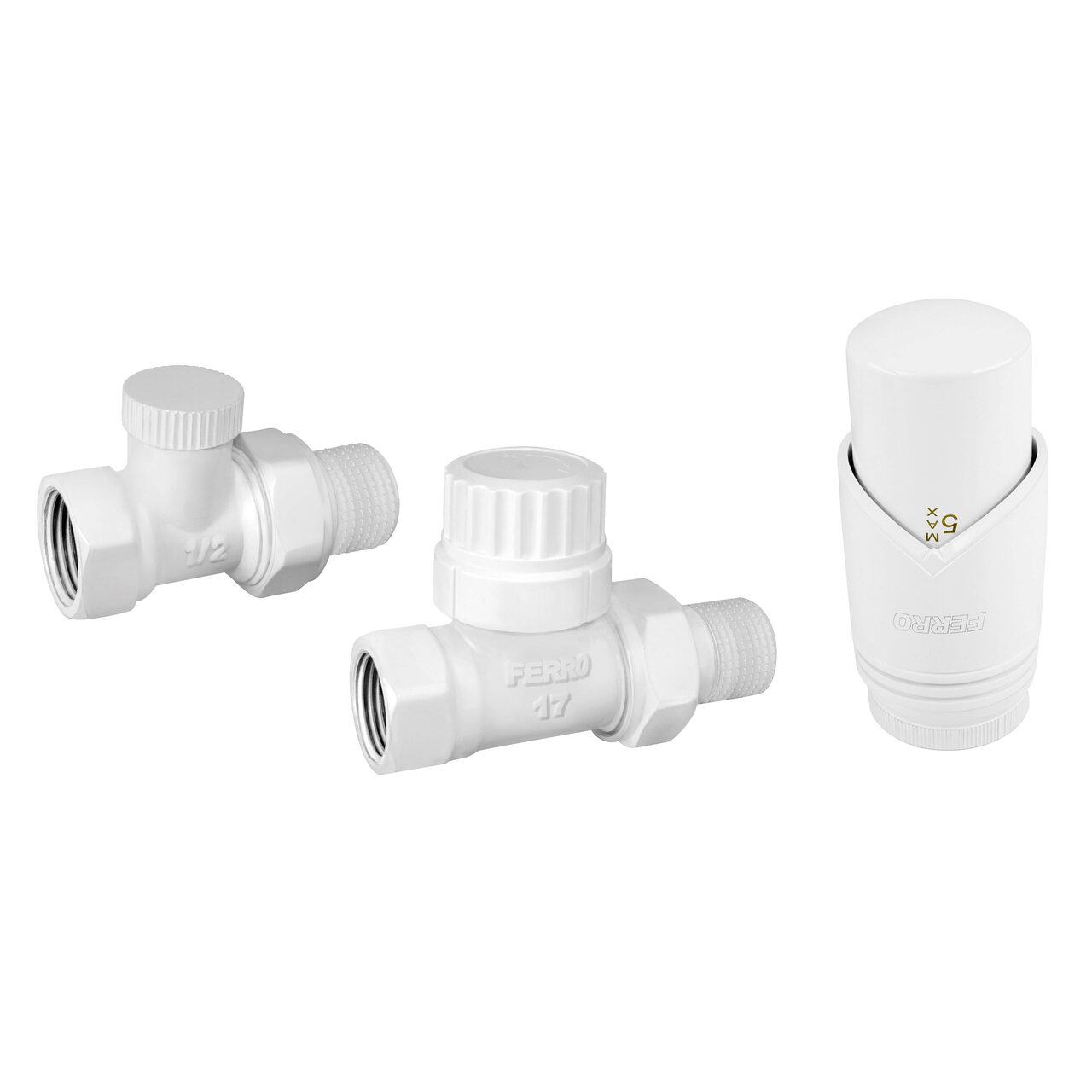 Set robineti radiator drepti 1/2" tur termostatic+retur+cap termostat GT30, alb, Ferro ZTM30WH
