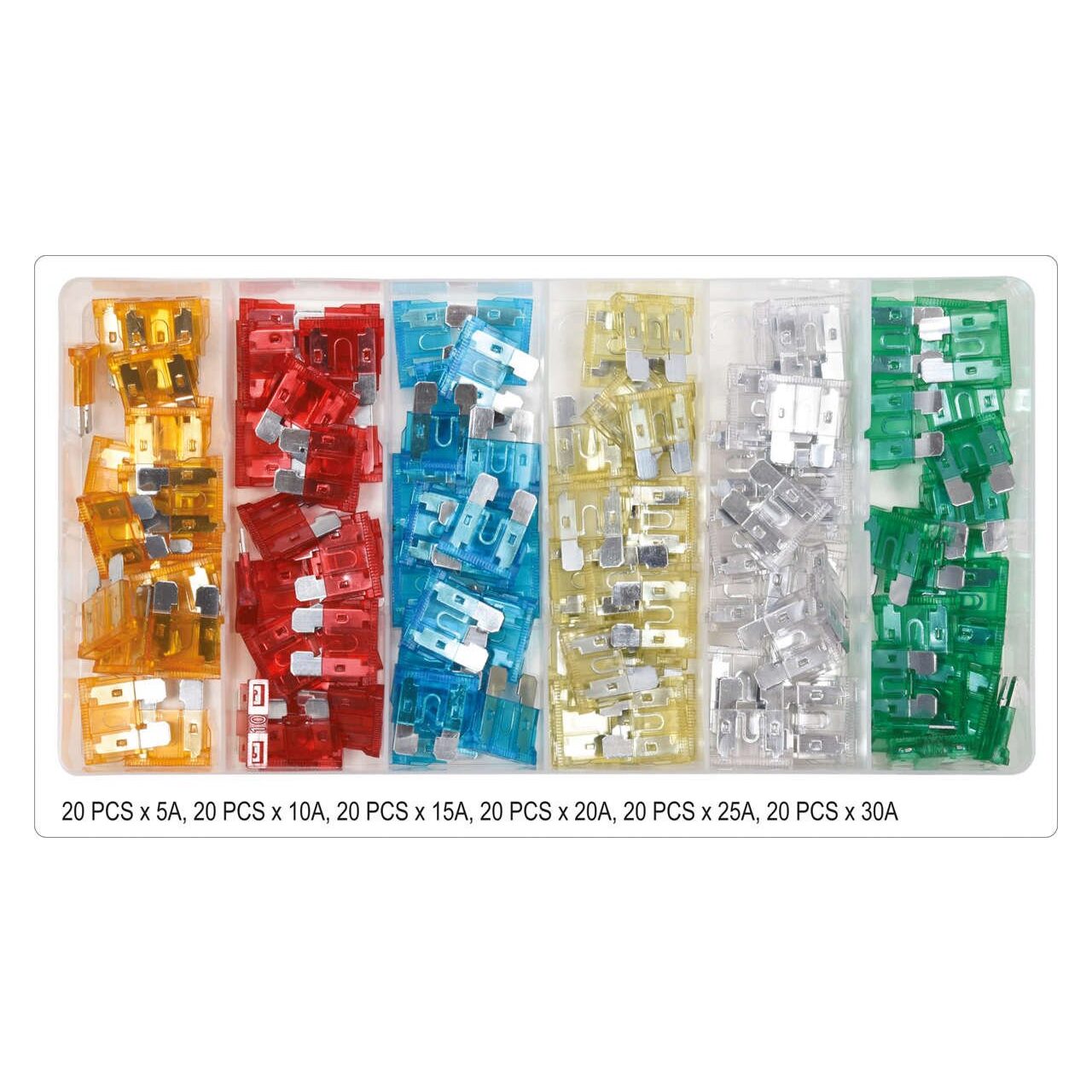 - 20 buc fiecare: 5 A, 10 A, 15 A, 20 A, 25 A, 30 A