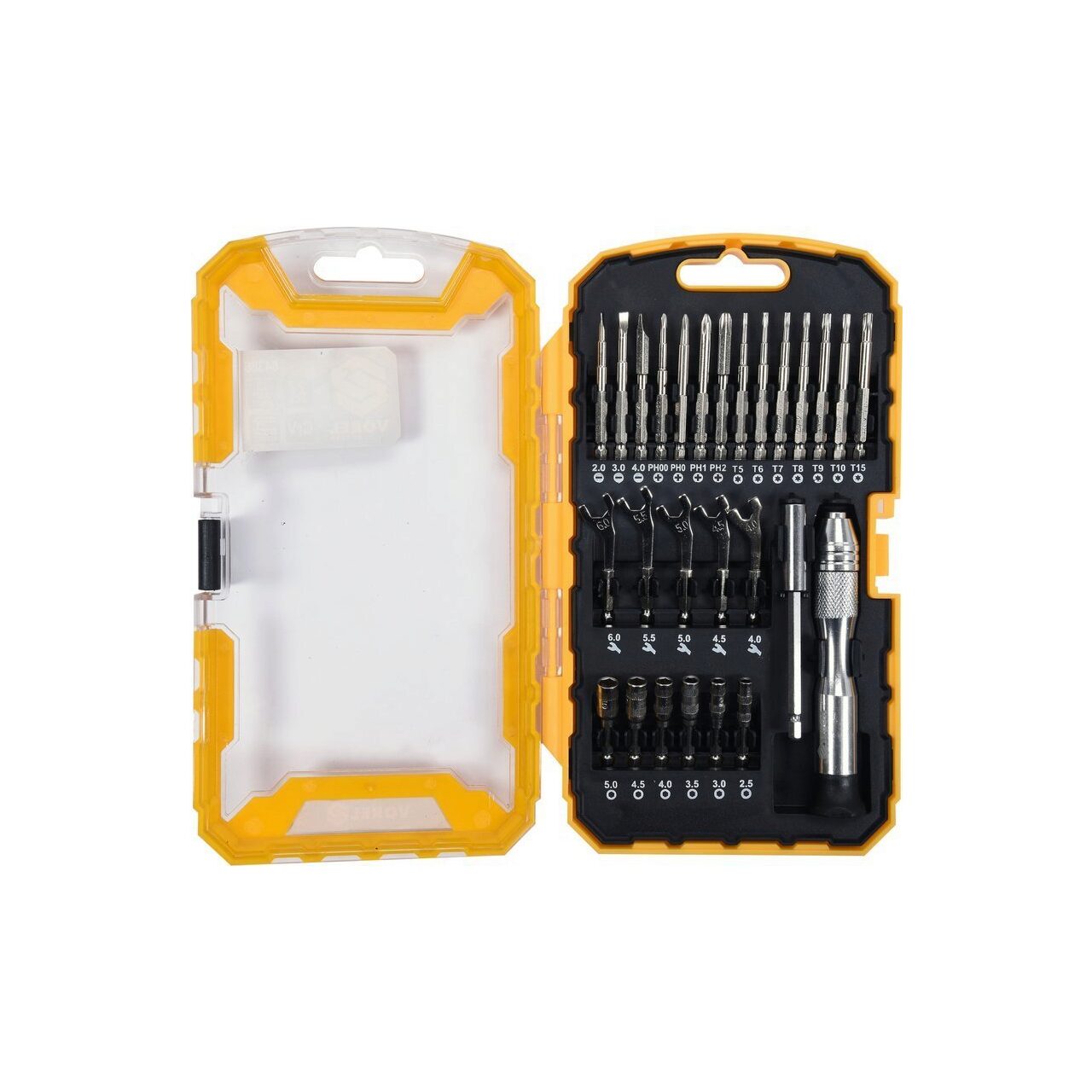 Un set de șurubelnițe de precizie cu biți interschimbabili de către Vorel 64386.