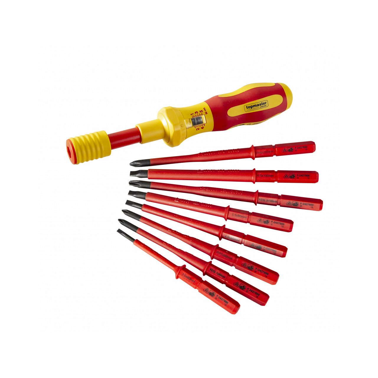 Setul de surubelnițe dinamometrice izolate Topmaster prezintă: