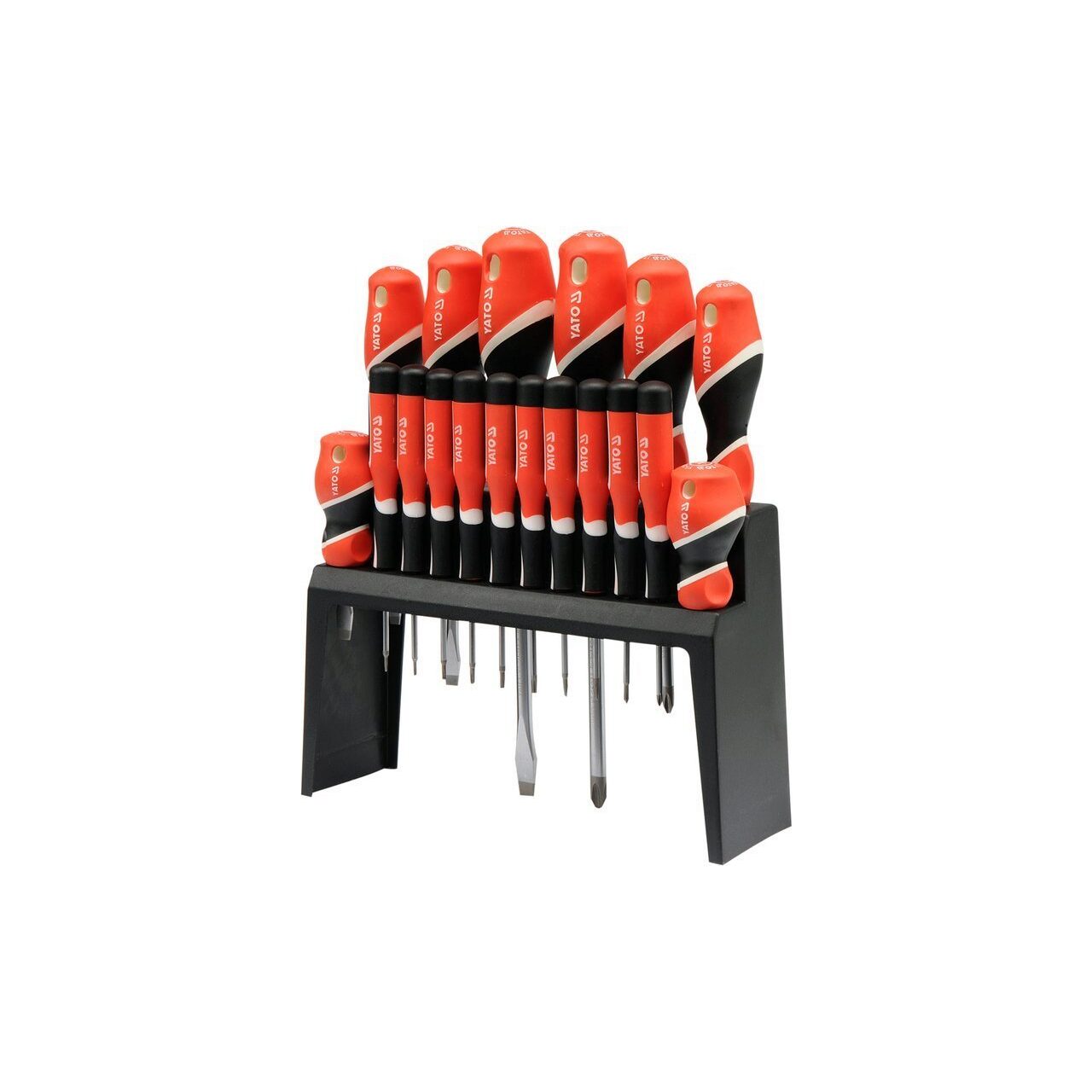 Set de optsprezece șurubelnițe profesionale, tijă din oțel cu simbolul S2, întărită la aproximativ 58 HRC.