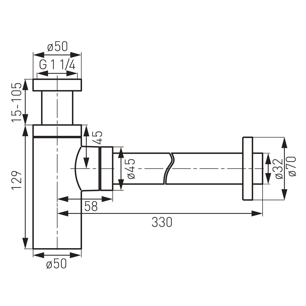 Proiectat pentru evacuare stabilă și montaj ordonat, acest sifon oferă integrare facilă în instalațiile pentru lavoar. Construcția din alamă susține o utilizare consecventă, iar forma rotundă simplifică poziționarea sub chiuvetă. Lungime de 330 mm pentru ajustare pe trasee scurte până la perete, cu o trecere firească spre conducta de evacuare. Tip racord G1¼×32 pentru potrivire cu scurgeri de lavoar cu filet standard și tub de 32 mm, asigurând compatibilitate mecanică cu fitinguri uzuale. Accesoriul inclus, rozetă, permite mascarea găurii din perete și obținerea unei linii curate în zona vizibilă, fără intervenții suplimentare în finisajele băii.