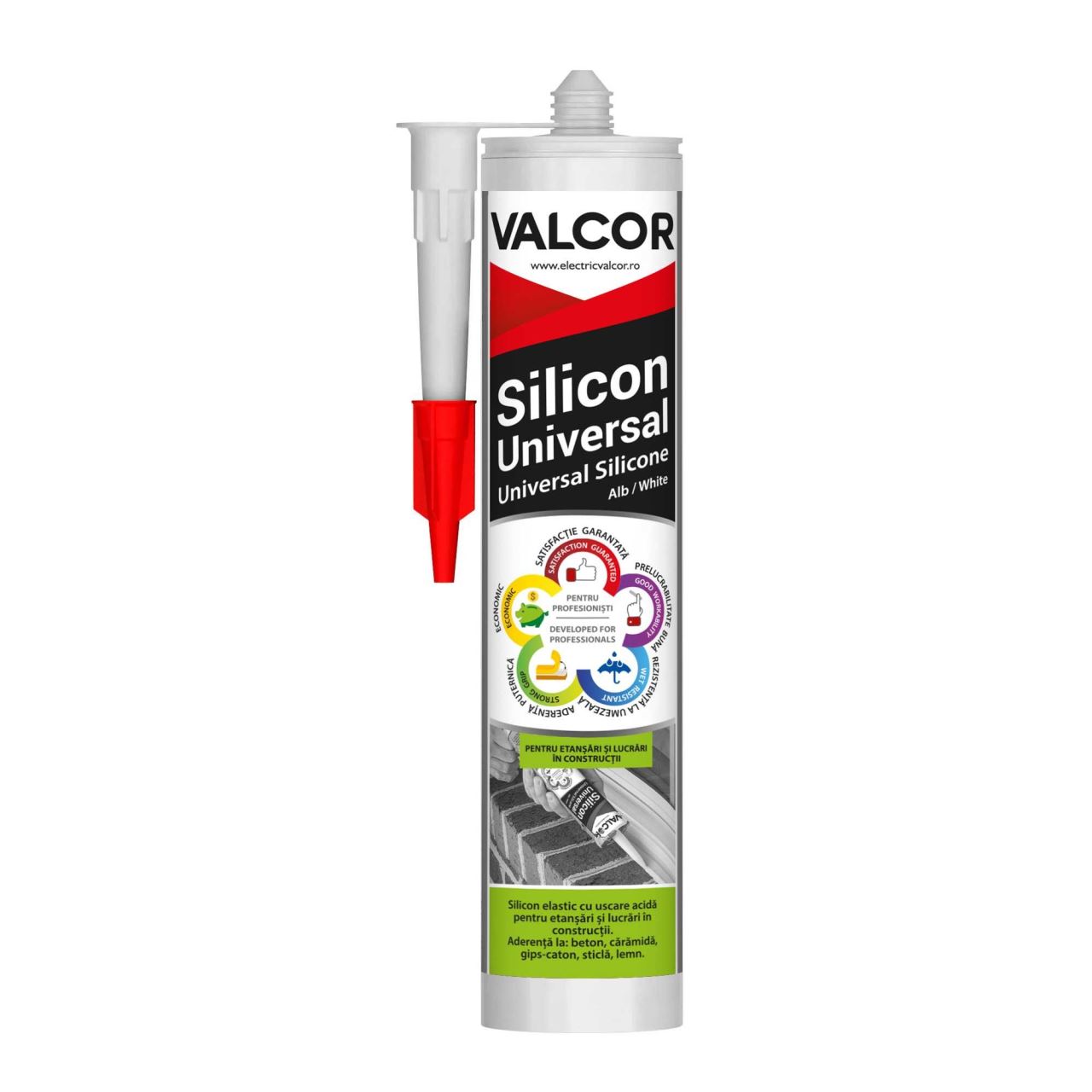 Silicon universal lucrari de constructii si reparatii Alb 280ml Valcor VLC42004 - Informații despre acest produs: