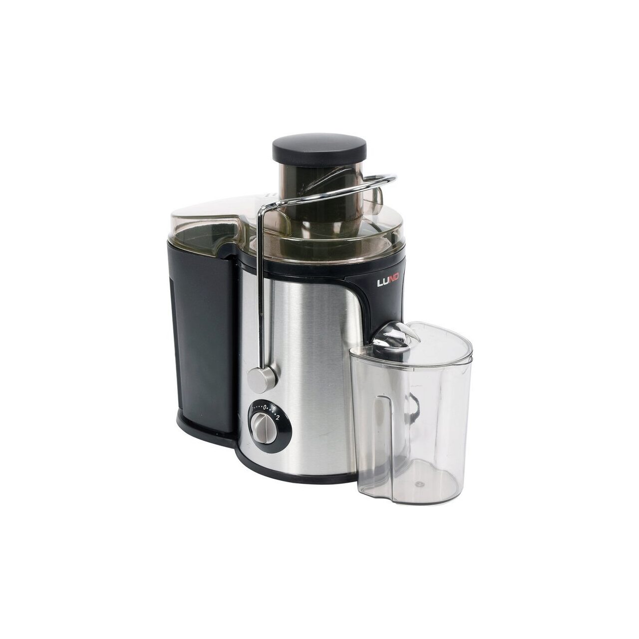 Caracteristici produsStorcător de mare viteză 600 W. - noul storcător de mare viteză LUND - deschidere mare pentru fructe - diametru exterior 73 mm, diametru interior 68 mm - carcasă din metal solid - Inox - disc din oțel inoxidabil - împingător de fructe - două întrerupătoare de siguranță împiedică activarea accidentală a dispozitivului în timpul asamblării sau asamblării incorecte. Un comutator este situat pe marginea carcasei și este dezactivat de proiecția capacului carcasei. Al doilea comutator este dezactivat prin blocarea corectă a clemei capacului - coș de celuloză - 1,5 l - recipient pentru suc - 0,5 l - 2 turații ale motorului - bază antiderapantăStorcatorul 67850 îndeplinește cerințele pentru produsele care intră în contact cu produsele alimentare în conformitate cu: - 1935/2004 - Regulamentul (CE) privind materialele și articolele destinate să vină în contact cu produsele alimentare - 10/2011 - Regulamentul (CE) privind materialele din plastic și articole pentru contactul cu alimenteleDomenii utilizareStorcătorul este folosit pentru extragerea sucului din fructe și legume folosind forța centrifugă. Sita, rotindu-se cu viteză mare, freacă și scurge carnea fructului. Pulpa drenată și sucul stors sunt direcționate către recipiente separate, astfel încât sucul să fie gata de băut imediat după terminarea funcționării dispozitivului.Metoda de utilizareStoarcerea fructelor și legumelor trebuiefie spălate și împărțit în părți mai mici decât jgheabul storcătorastfel încât acesteapoată fi ușorplasat în jgheabul. Fructele și legumele cu piele groasă sau care nu sunt consumate în mod normal trebuie curățate. De asemenea, ar trebui să îndepărtați toate pietrele și părțile dure, ne-comestibile din fructe și legume. Conectați storcătorul la sursa de alimentare și porniți-l. Comutatorul vă permite să setați trei poziții:0 - dispozitivul este oprit1 - viteza mai mică a sitei adaptată la extragerea fructelor și legumelor moi2 - Viteza mai mare a sitei adaptată la extragerea tuturor fructelor și legumelorAșteptați ca sita să se transforme la viteză maximă, apoi introduceți fructele sau legumele prin orificiul de admisie. Pentru performanțe maxime de suc, împingeți fructele sau legumele în storcător cu ajutorul dispozitivului de împingere furnizat. Conținutul pachetuluiProdusul este livrat complet și nu necesită asamblare. Containerele pentru suc și pulpă sunt furnizate împreună cu storcătorul.Parametrii- Frecvență [Hz]: 50
