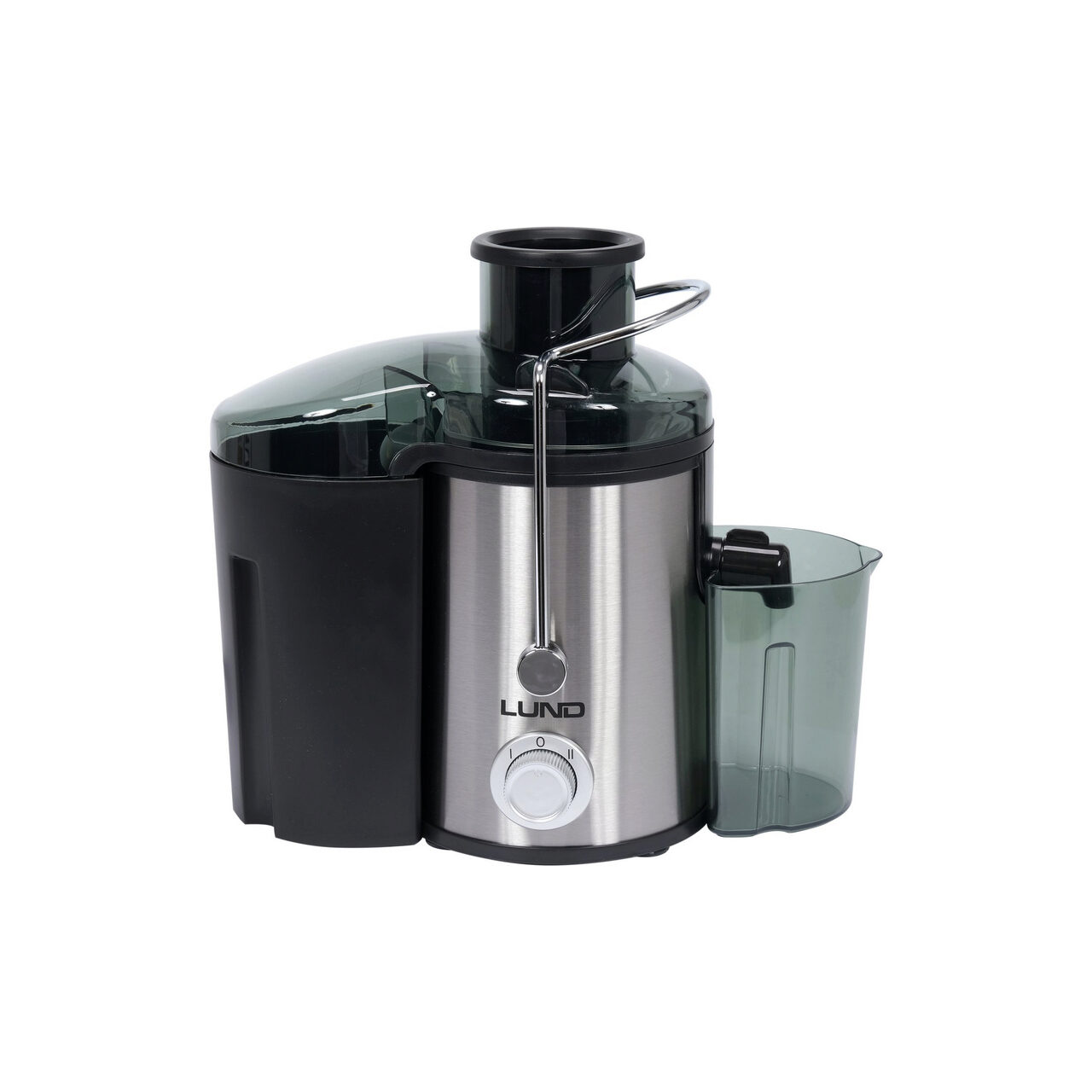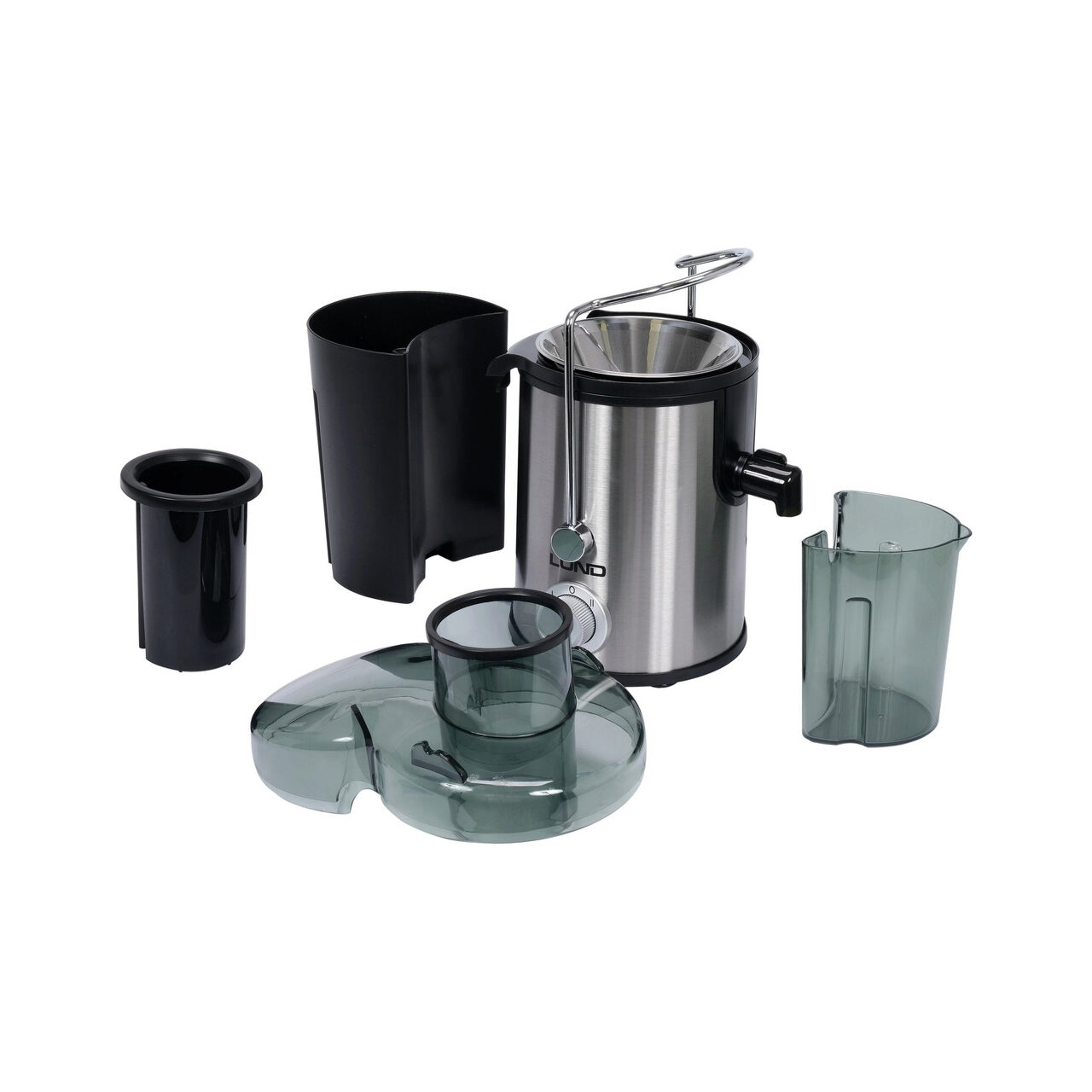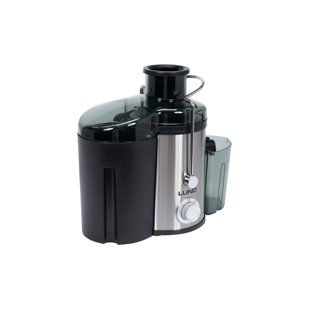Storcător de fructe LUND de mare viteză, cu un motor eficient de 600 W și reglare a vitezei pe 2 niveluri, până la 13.000 rpm. Deschiderea de alimentare cu lățimea de 65 mm permite introducerea pieselor mari