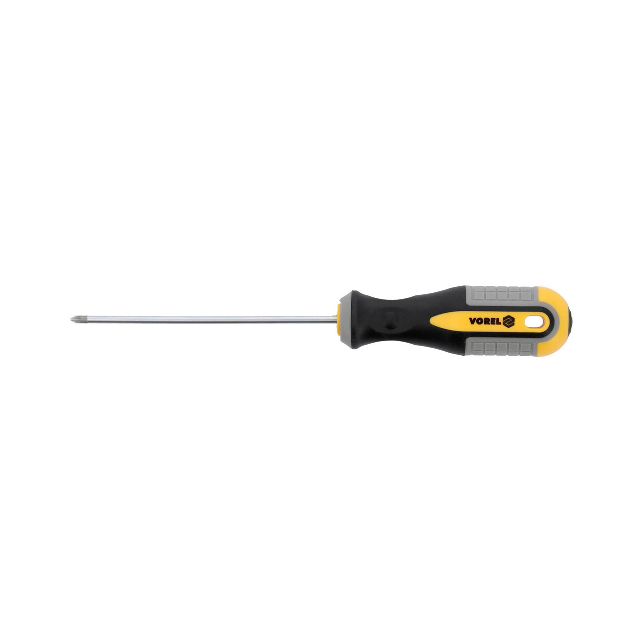Șurubelniță Phillips PZ1x75 mm de la Vorel, fabricată din oțel crom-vanadiu CrV. Vârful are un finisaj satinat, suplimentar sablat și magnetizat, care permite o prindere fermă pe capul șurubului. Mânerul este fabricat din plastic bicompozit. Gaura din mâner vă permite să agățați șurubelnița.