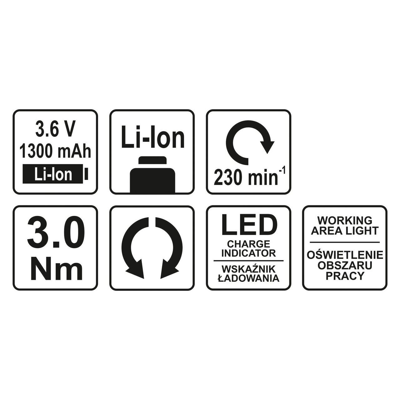 Surubelnita cu acumulator 3.6v, 3n m Yato YT-82760 - Informații despre acest produs: