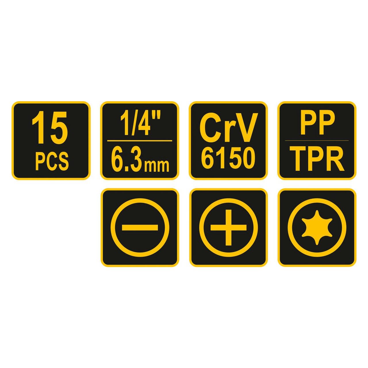Surubelnita cu biti si tubulare, 15 buc Vorel 65034 - Informații despre acest produs: