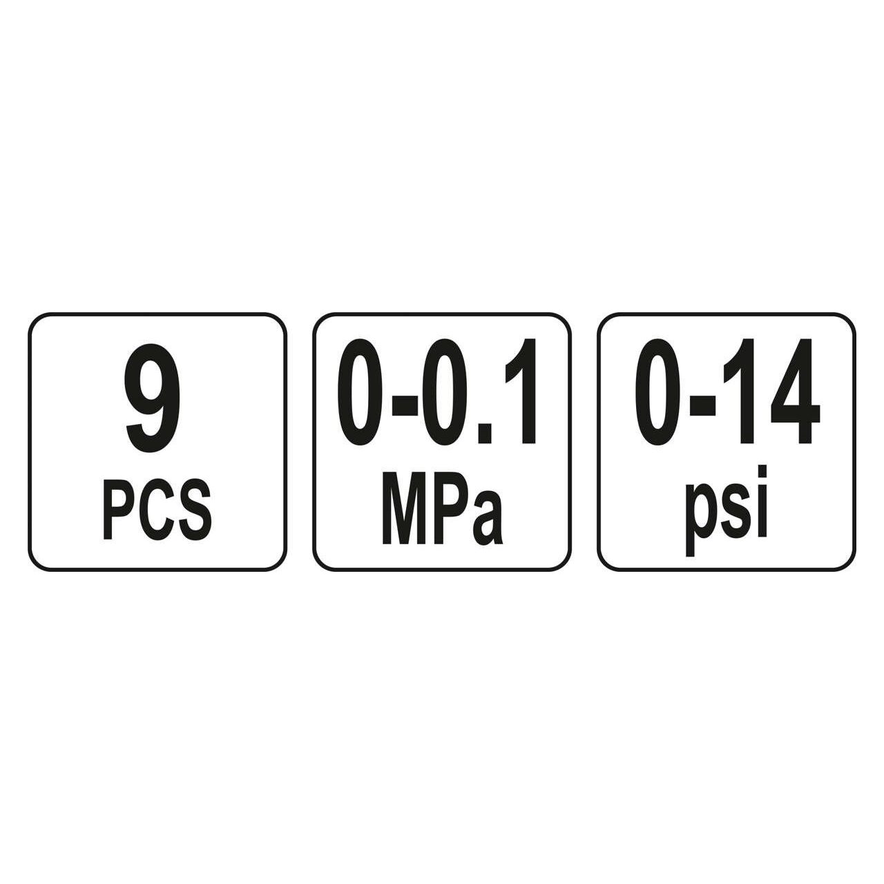 Set de 9 piese conceput pentru a măsura presiunea în vid, carburator, colectoare de aspirație, servo.