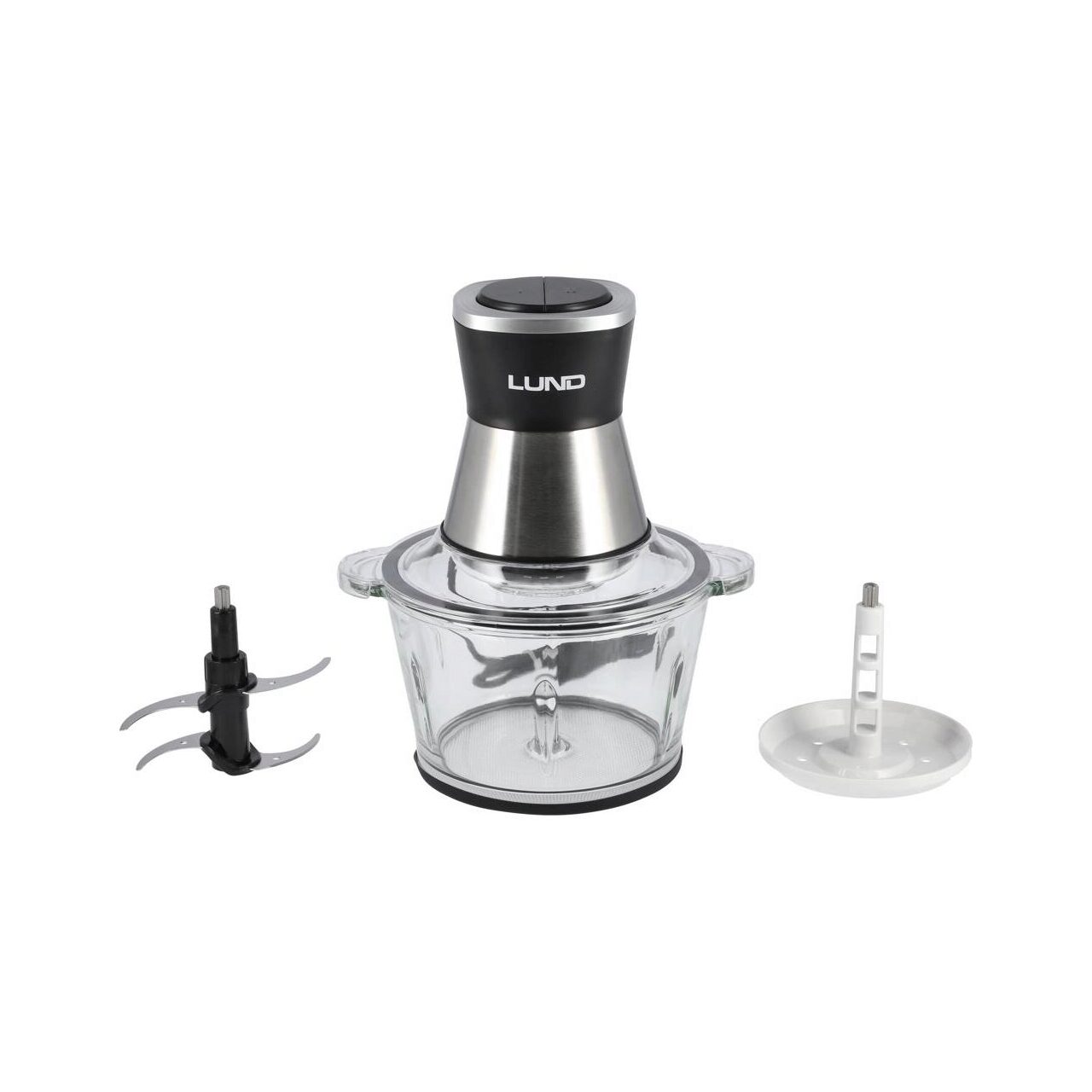 Tocător multifuncțional 3 în 1 de la LUND. Eficiența de tocare este asigurată de un motor puternic de 500 W și patru lame cu două straturi din oțel inoxidabil SS420 de înaltă calitate. Setul include și o piesă pentru curățarea usturoiului și o piesă pentru spumă. Un avantaj suplimentar al dispozitivului este un vas mare, de 2 litri, cu cauciuc antiderapant și o racletă care facilitează îndepărtarea produselor tocate.