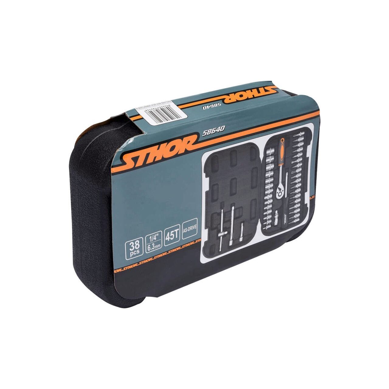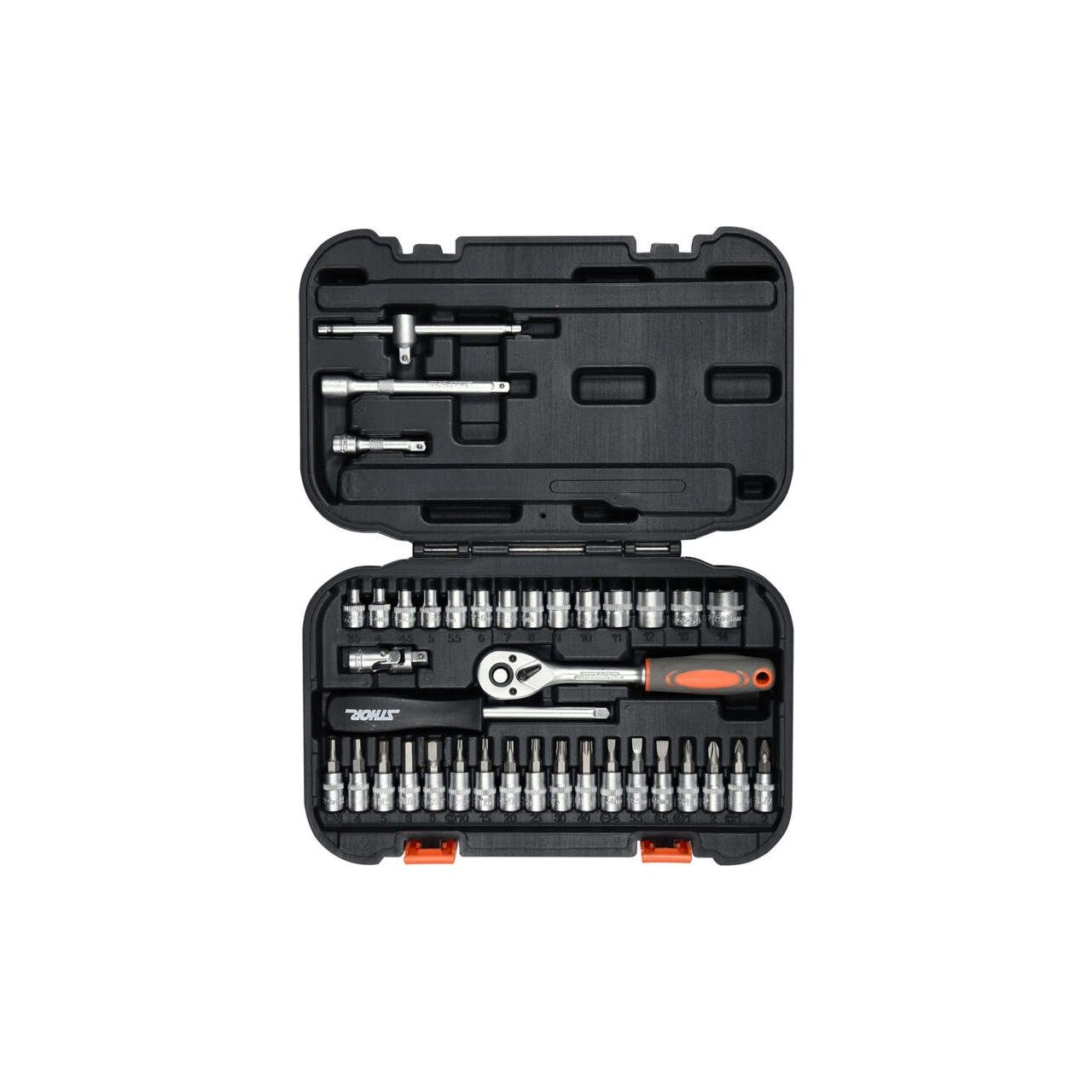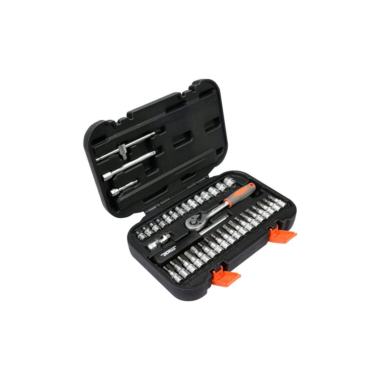 Setul de scule STHOR este format din 38 de elemente plasate într-o carcasă din plastic convenabilă.