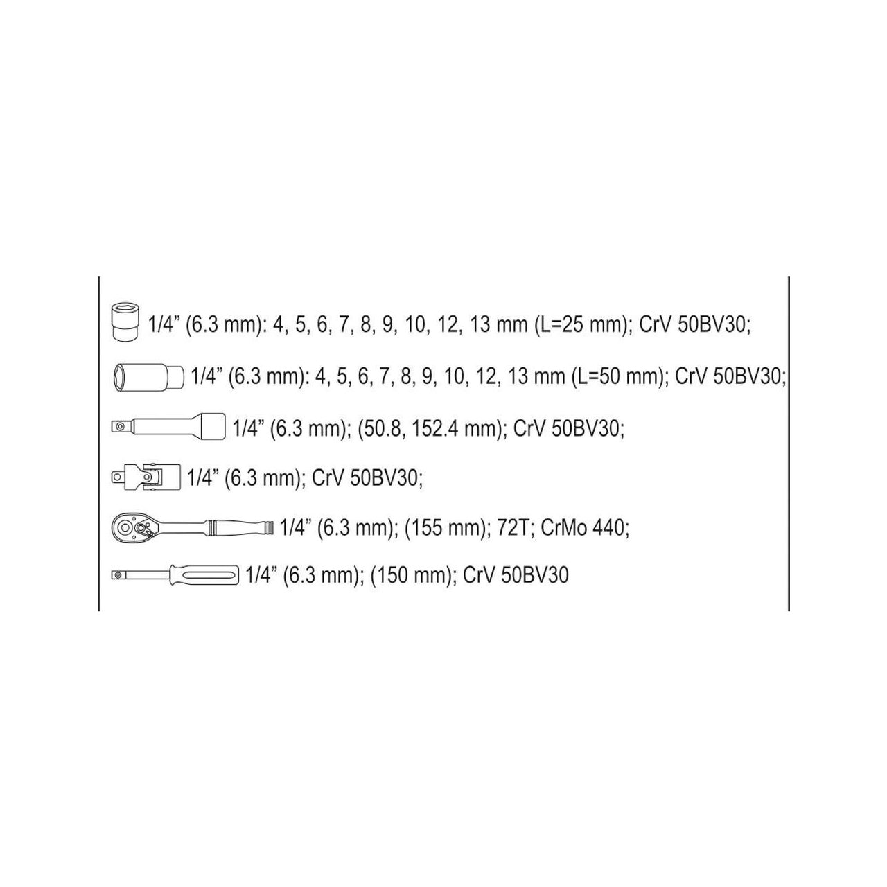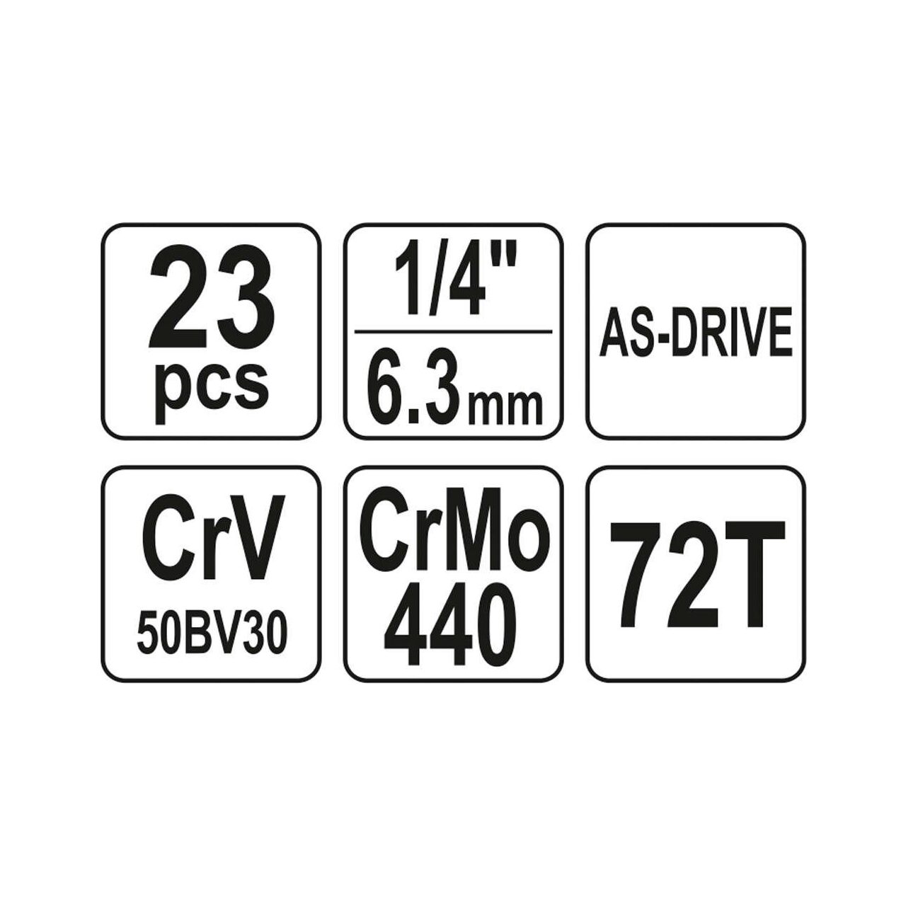 Trusa tubulare + antrenor 1/4" 23 buc Yato YT-14451 - Informații despre acest produs: