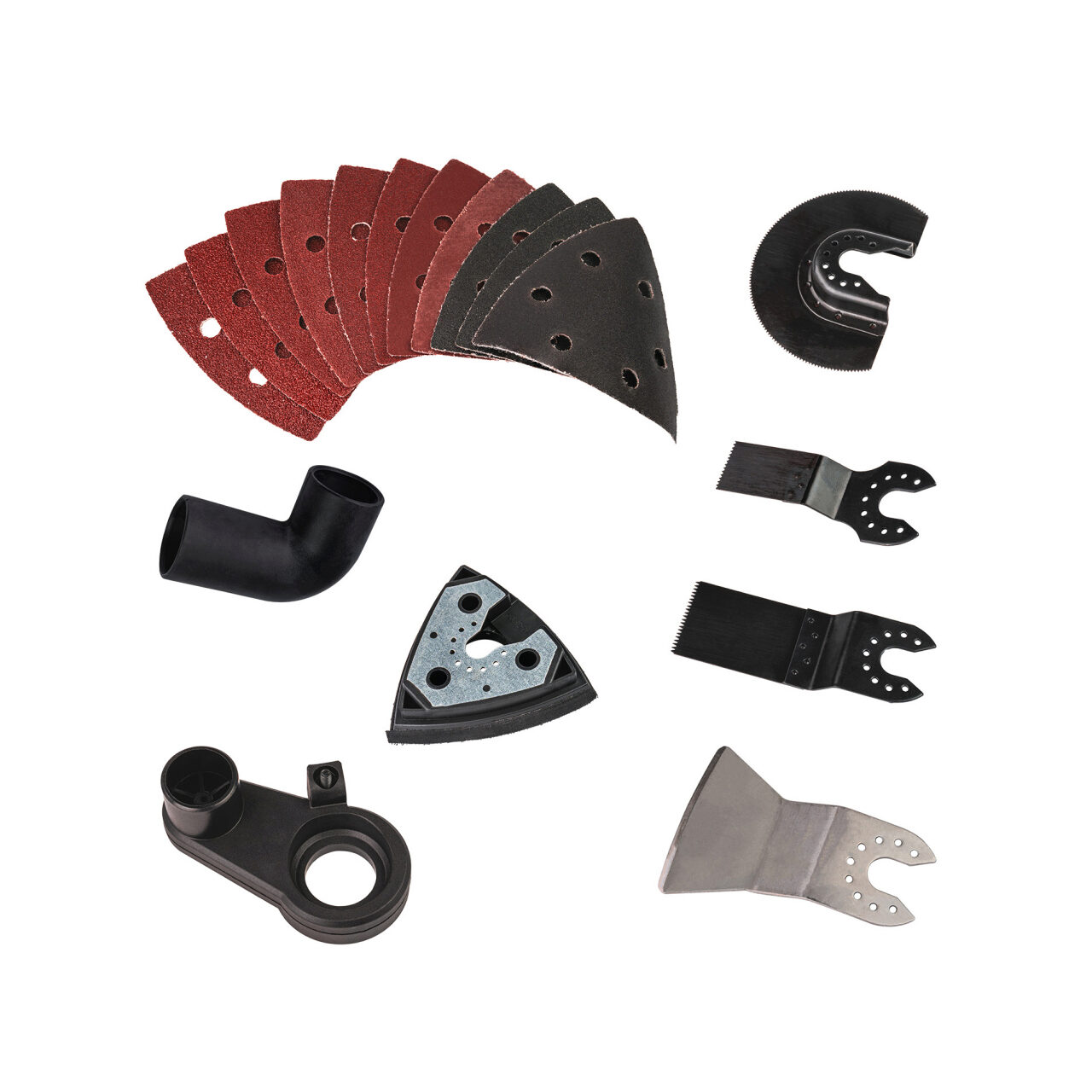 - Aplicație versatilă – ideal pentru tăierea lemnului, metalului, plasticului și plăcilor de gips-carton, șlefuirea diverselor suprafețe, precum și îndepărtarea adezivilor și a straturilor vechi