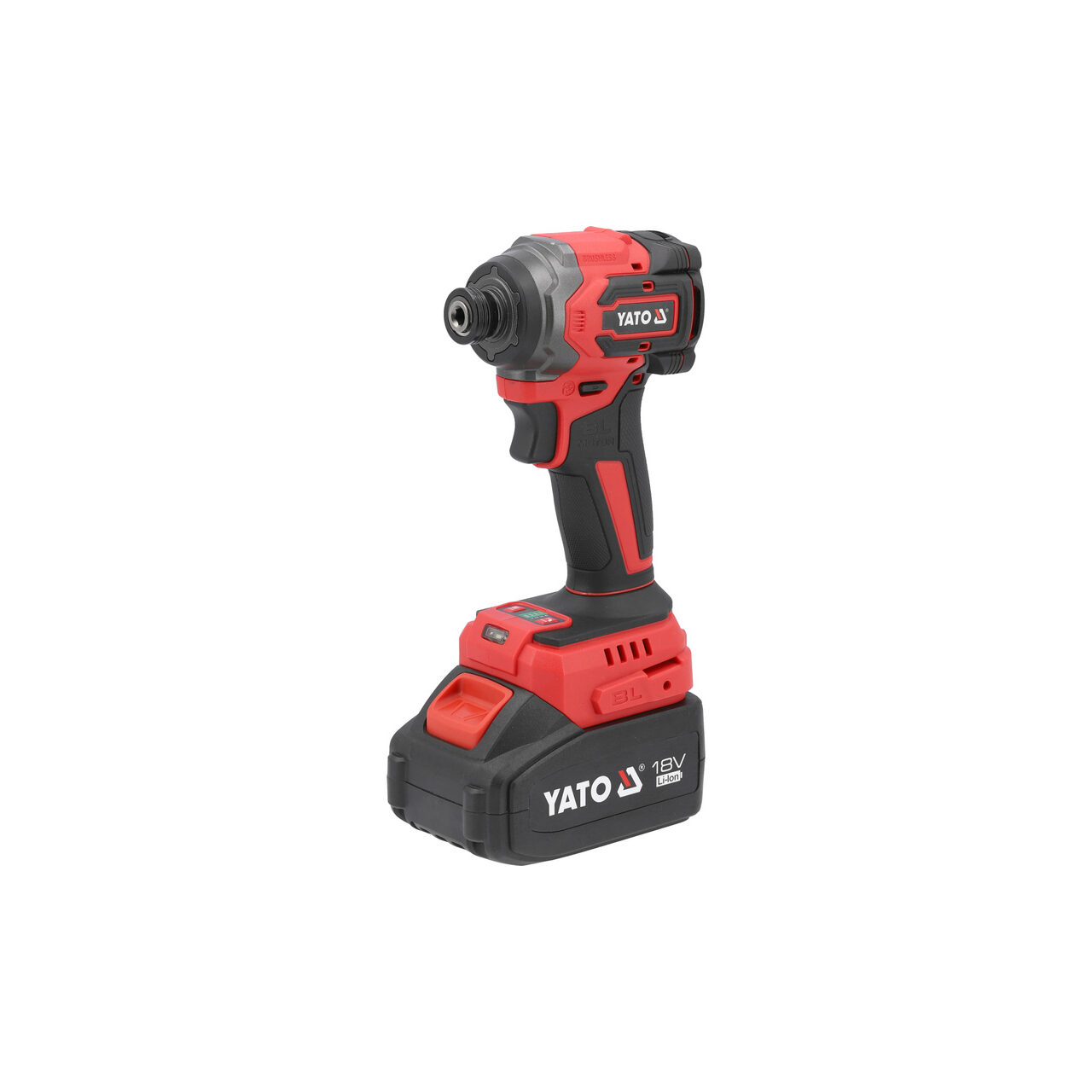 Șurubelniță de impact fără perii alimentată de bateria platformă YATO de 18V. Principalul său avantaj este corpul foarte scurt, de 90 mm lungime. Acest lucru vă permite să lucrați în locuri greu accesibile și să apăsați șurubul perpendicular în material. Reglarea cuplului de strângere și slăbire în 4 etape protejează utilizatorul împotriva dezizolării și strângerii excesive a șuruburilor. Impactul tangențial previne săritura burghiului în timpul înșurubării. Cheia dinamometrică este echipată cu un suport hexagonal durabil pentru scule. Șurubelnița are protecție termică pentru a proteja împotriva supraîncărcării.
