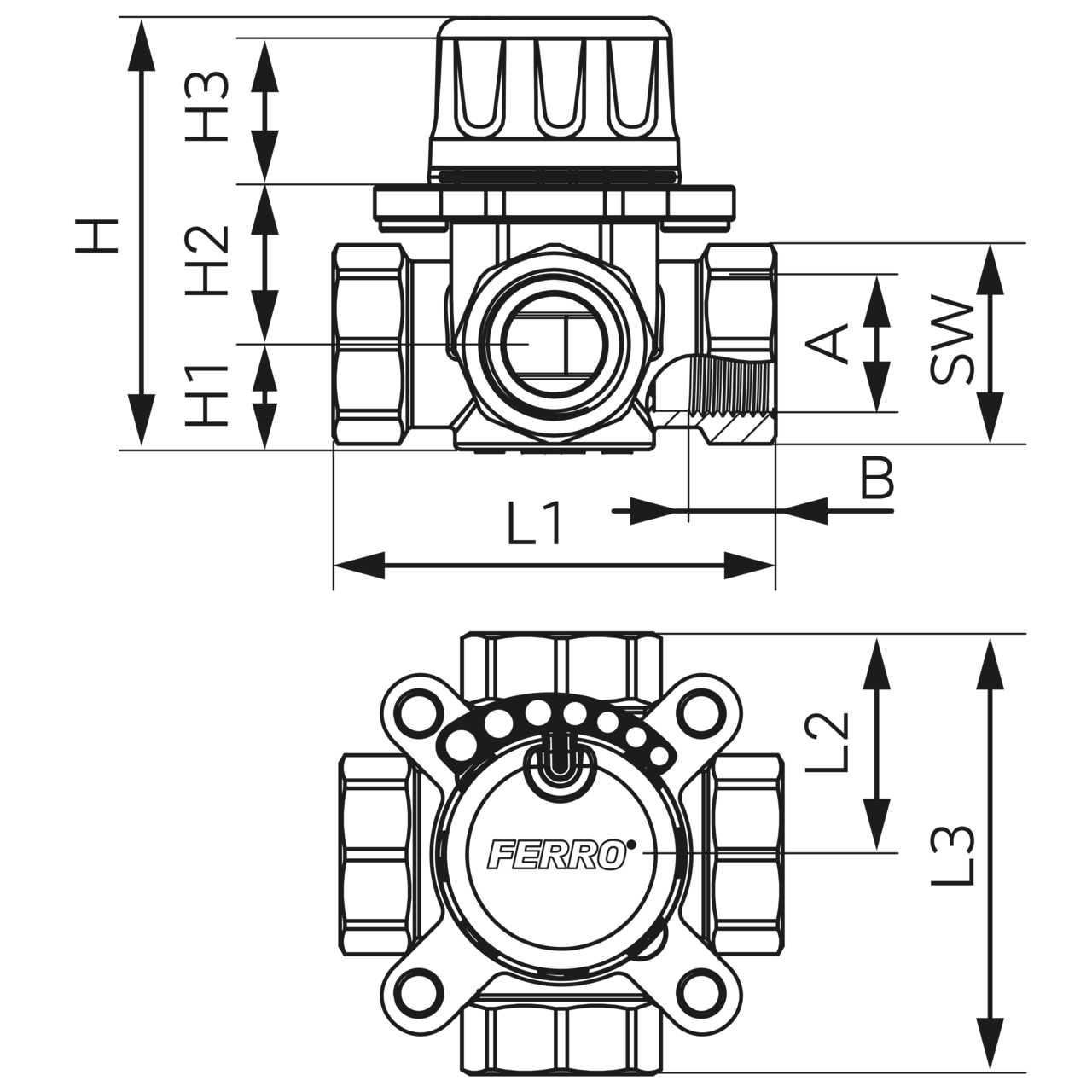 Vana de amestec cu 4 cai D.1", FI, Ferro ZMV42 - Informații despre acest produs: