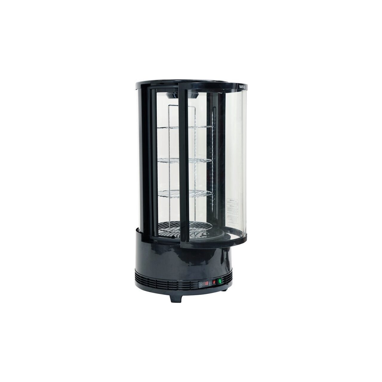 Afișaj rotund YATO refrigerat cu o capacitate de 73L în negru.