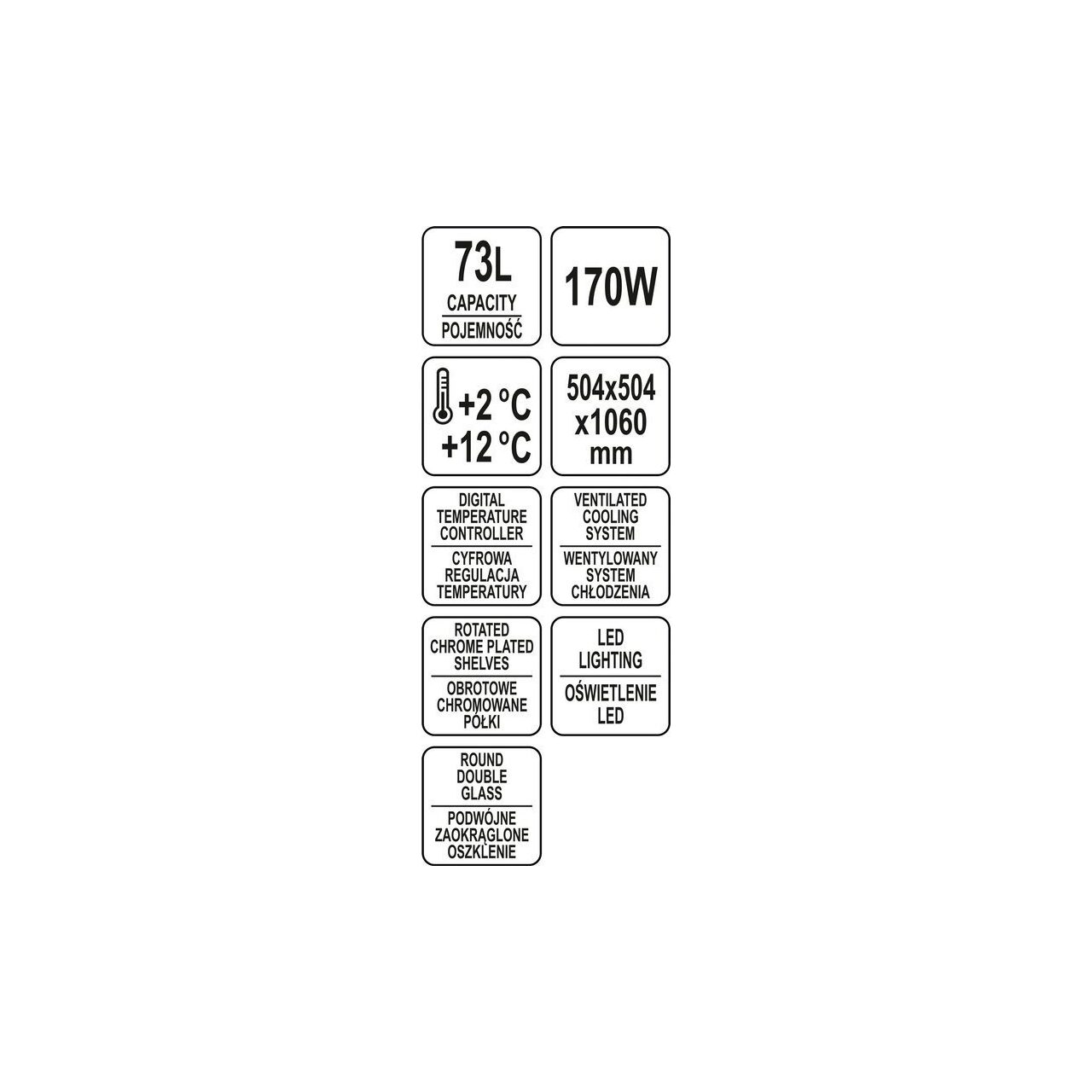 Vitrina frigorifica 170 w, 73 l, 504 x 504 x 1060 mm Yato YG-05090 - Informații despre acest produs:
