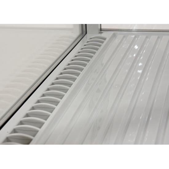 Vitrina frigorifică YATO independentă, cu o capacitate de 78L în alb, dimensiune 428x386x960mm. Vitrina frigorifică YATO este proiectată pentru afișarea prăjiturilor, prăjiturilor, cocktail-urilor, iaurturilor și a diverse băuturi răcoritoare, precum și salate sau gustări mici. Designul modern combinat cu calitatea înaltă a materiilor prime înseamnă că vitrina frigorifică YATO arată excelent pe față în toate tipurile de cofetării, cafenele, restaurante, baruri și magazine comerciale. În plus, iluminarea cu LED instalată din două părți expune bucatele prezentate într-un mod foarte atractiv încurajând clienții să le aleagă. Vitrina frigorifică YATO are o capacitate de 78L și are trei rafturi armate și acoperite cu PVC cu înălțimea reglabilă de montare. Accesul la ele se face prin uși de sticlă deschise. Sunt confecționate din sticlă temperată cu două straturi, precum și din sticlă față și laterală. Aceasta asigură o rezistență ridicată și, în același timp, proprietăți izolatoare foarte bune. Amplasamentul funcționează în intervalul de temperatură 0 ~ + 12 ° C cu ajutorul agentului frigorific R600a. Pe de altă parte, tehnologia de răcire forțată aplicată și funcția de decongelare automată asigură o muncă foarte eficientă și, în același timp , economisesc energie. În plus, răcirea forțată garantează distribuirea uniformă a aerului pe întregul site, asigurând o temperatură uniformă pe fiecare raft. Website-ul este controlat cu ajutorul unui controler electronic cu afișaj de temperatură.