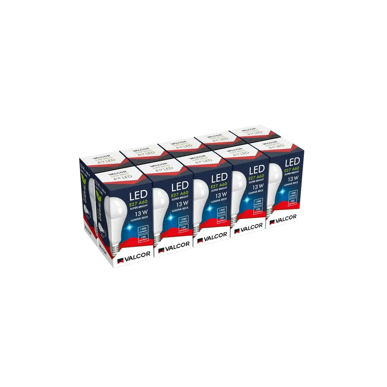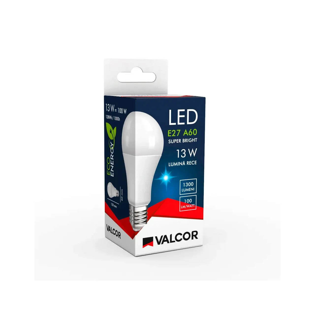 Iluminează-ți spațiul cu becul LED VALCOR A60 Lumina Rece de 13W, compatibil cu soclul E27. Rezistent și cu un consum redus de energie.